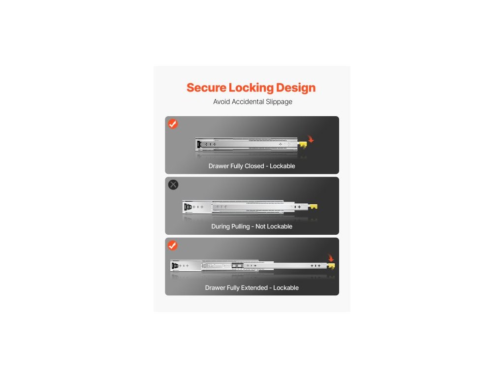 1 pár plně výsuvných výsuvů pro zásuvky 16 18 20 24 30 35 37,4 59 24 32 36 40 48 60 palců, nosnost 250 liber, uzamykatelné výsuvy pro zásuvky, kuličkové ložisko se zámkem, boční montáž, posuvná lišta pro zásuvky