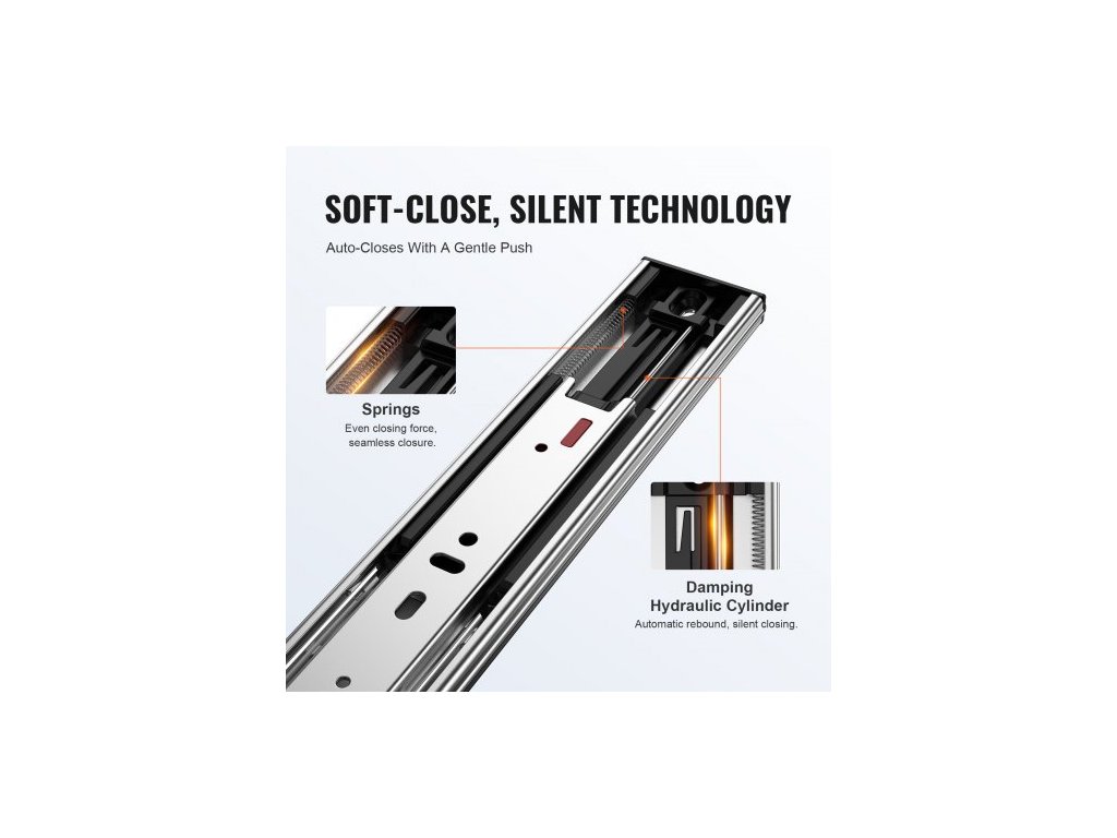 10 párů výsuvů pro zásuvky 457,2 mm, boční montáž, odolná ocelová kolejnice s plným výsuvem, tiché vodicí kluzáky s tlumeným zavíráním, kuchyňské lišty s kuličkovým ložiskem, nosnost 45,6 kg