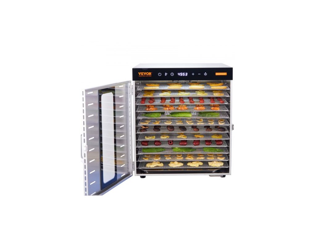 10 tácků, sušička potravin, nerezová ocel, 1000 W, sušení sušeného ovoce