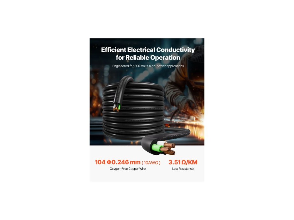 Izolační materiál: CPE pryž,Číslo modelu položky: SOOW 10AWG/3C,Materiál vodiče: Jemný měděný drát bez kyslíku,Délka kabelu: 100 ft/30,48 m,Provozní prostředí: -40°C až 90°C/-104°F až 194°F,Rozměry výrobku: 380 x 380 x 140 mm/14,96 x 14,96 x 5,51 palce,Čistá hmotnost: 13,81 kg/30,4 Jmenovité napětí: 600 V AC