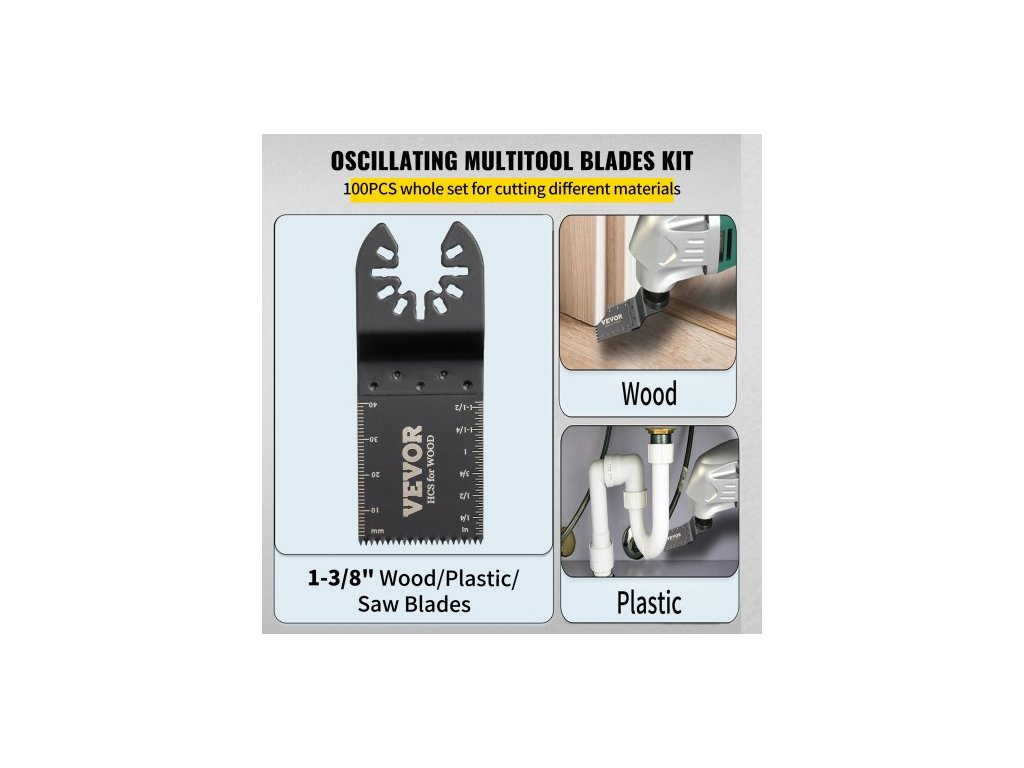 100 ks oscilačních pilových kotoučů, sada rychloupínacích multifunkčních kotoučů, HCS kotouče na dřevo a plast, kompatibilní s Dewalt, Dremel, Fein, Worx, Bosch, Makita, Milwaukee