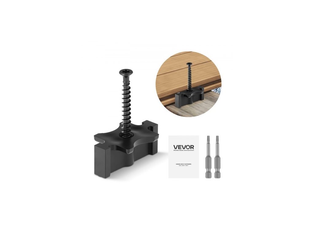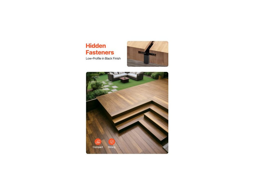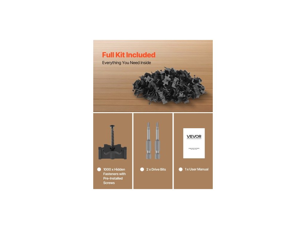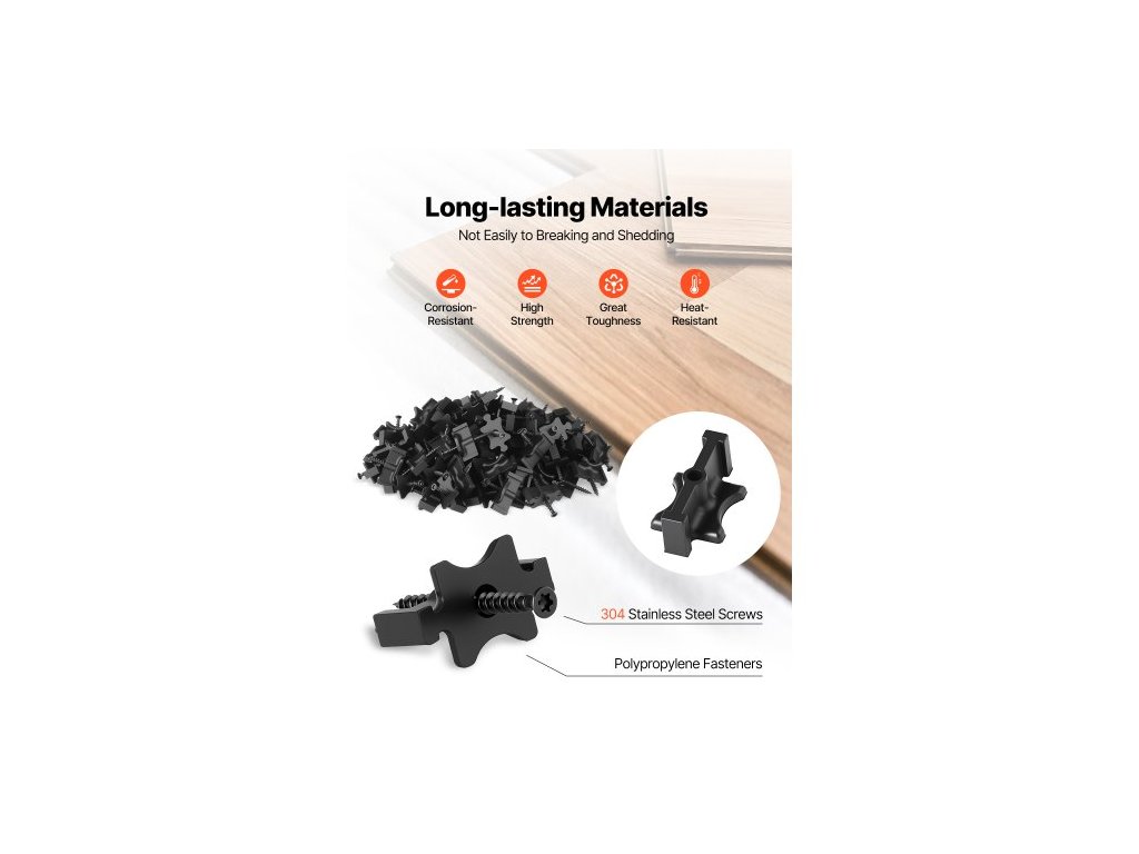 1000 ks skrytých úchytů pro kompozitní terasové desky, univerzální kompozitní T-spony a plastové skryté úchyty s kovovými šrouby, polypropylenové PP spony, funkční s mezerami 6,5 mm, černé