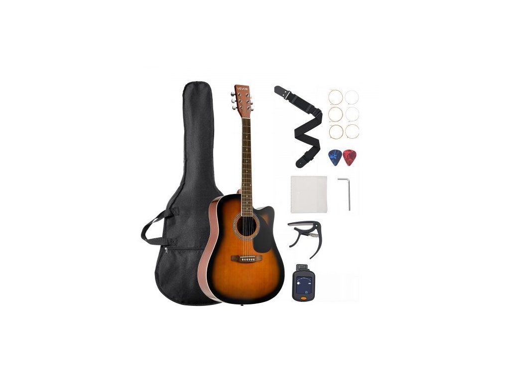 104,4 mm (41 palců) Cutway akustická kytara, pouzdro pro začátečníky, barva Sunburst