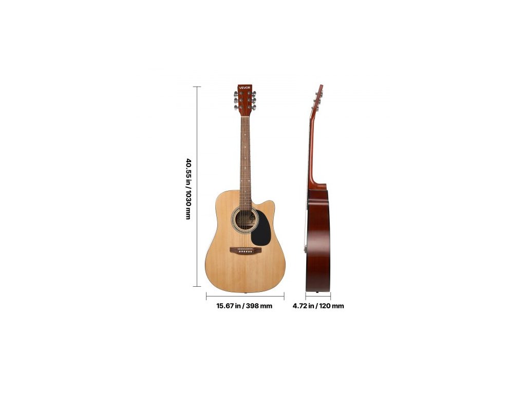 Rozměr: 41 palců/1041,4 mm,Barva: Přírodní povrch,Číslo modelu: FG068C-41N,Styl: Akustická kytara Cutway,Materiál: Smrková vrchní deska, mahagonová zadní deska, hmatník z palisandru,Rozměry výrobku: 40,55 x 15,67 x 4,72 palce/1030 x 398 x 120 mm,Čistá hmotnost: 6,33 lbs/2,87 kg