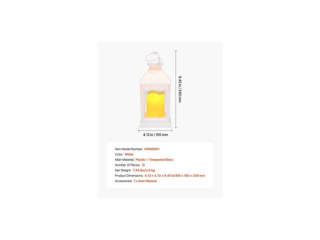 Počet kusů: 12,Barva: Bílá,Číslo modelu položky: HUIS0001,Rozměry produktu: 4,13 x 4,13 x 9,45 palce/105 x 105 x 240 mm,Čistá hmotnost: 7,94 lbs/3,6 kg,Hlavní materiál: Plast + tvrzené sklo
