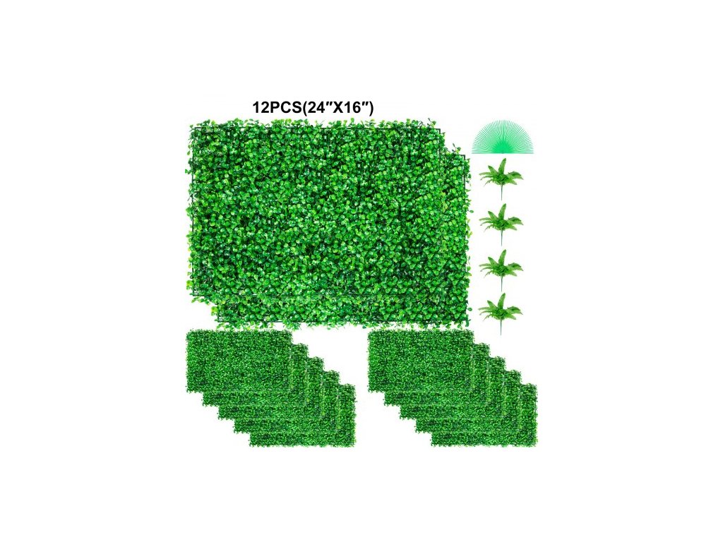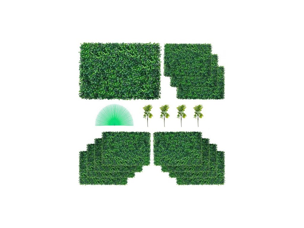 12ks Umělý zimozeleňový panel UV zimozeleňový živý plot Nástěnné panely z umělé trávy 24x16" 4cm Zelená travnatá stěna Falešný živý plot pro dekoraci soukromí Plot Vnitřní Venkovní Zahrada Dvůr