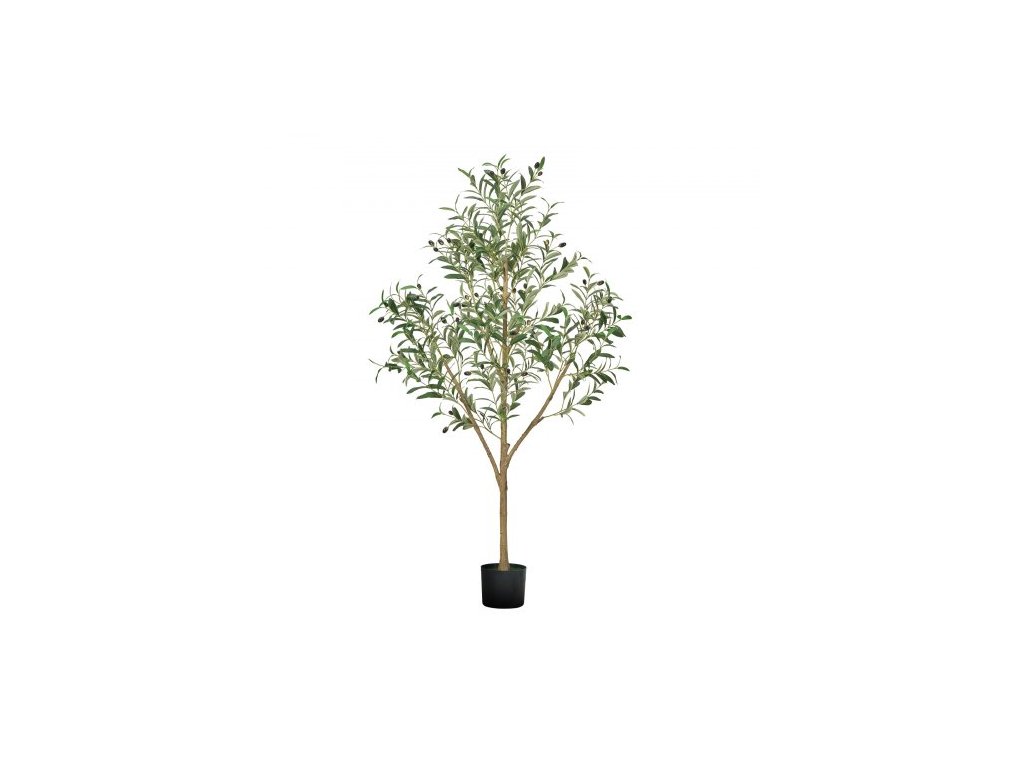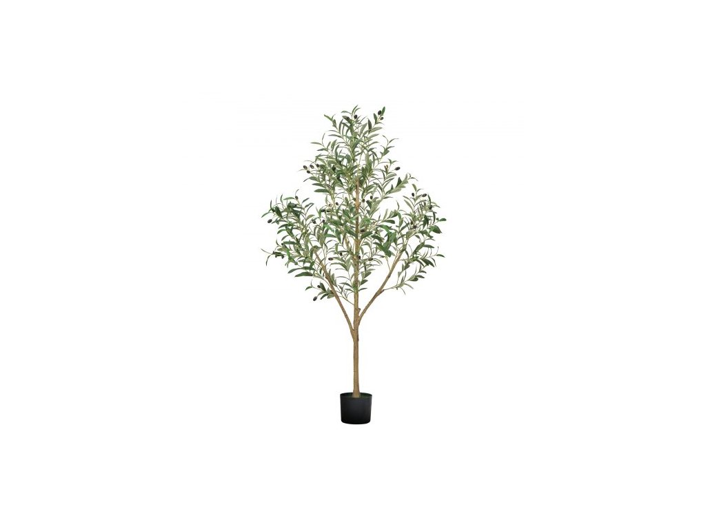Umělý olivovník 150 cm s černým květináčem, vysoký umělý strom s kmenem z přírodního dřeva a realistickými zelenými listy a plody, umělá rostlina do interiéru pro domácnost, kancelář, obývací pokoj, rohovou dekoraci