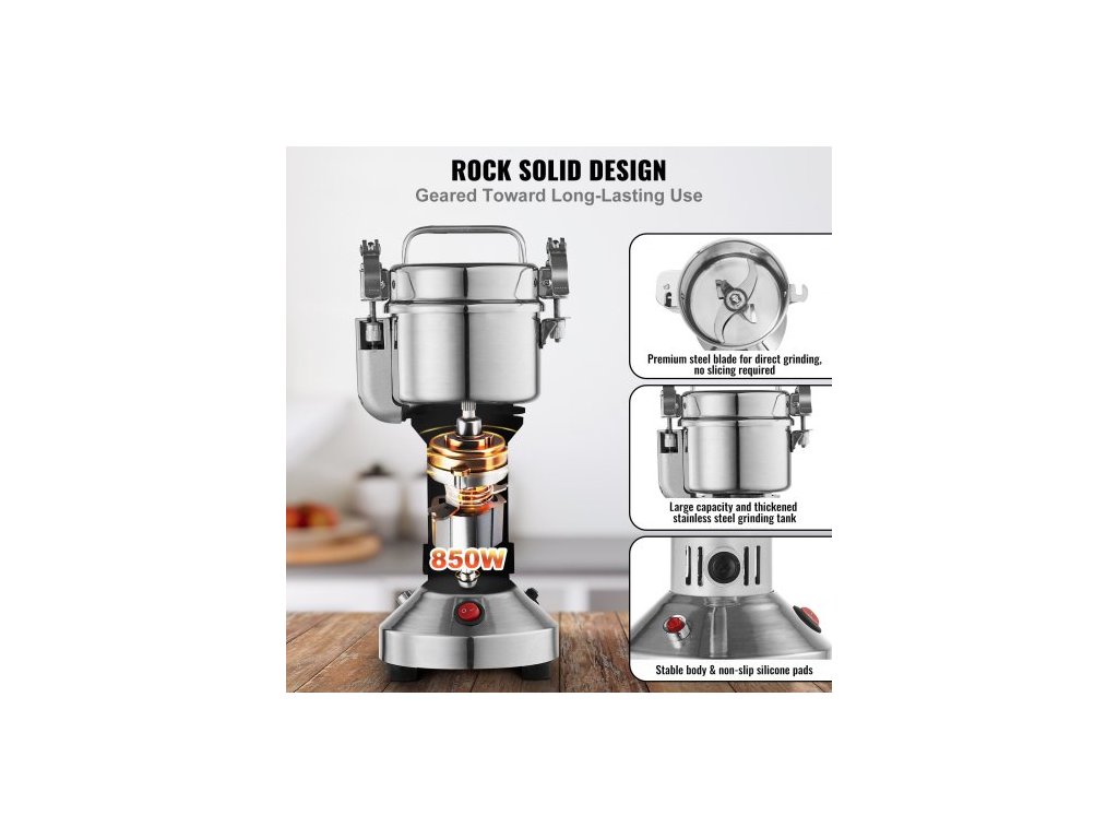 150g elektrický mlýnek na obilí, vysokorychlostní 850W komerční mlýnky na koření, nerezový drtič na prášek, na suchá zrna, koření, obiloviny, kávu, kukuřici, pepř, rovný typ