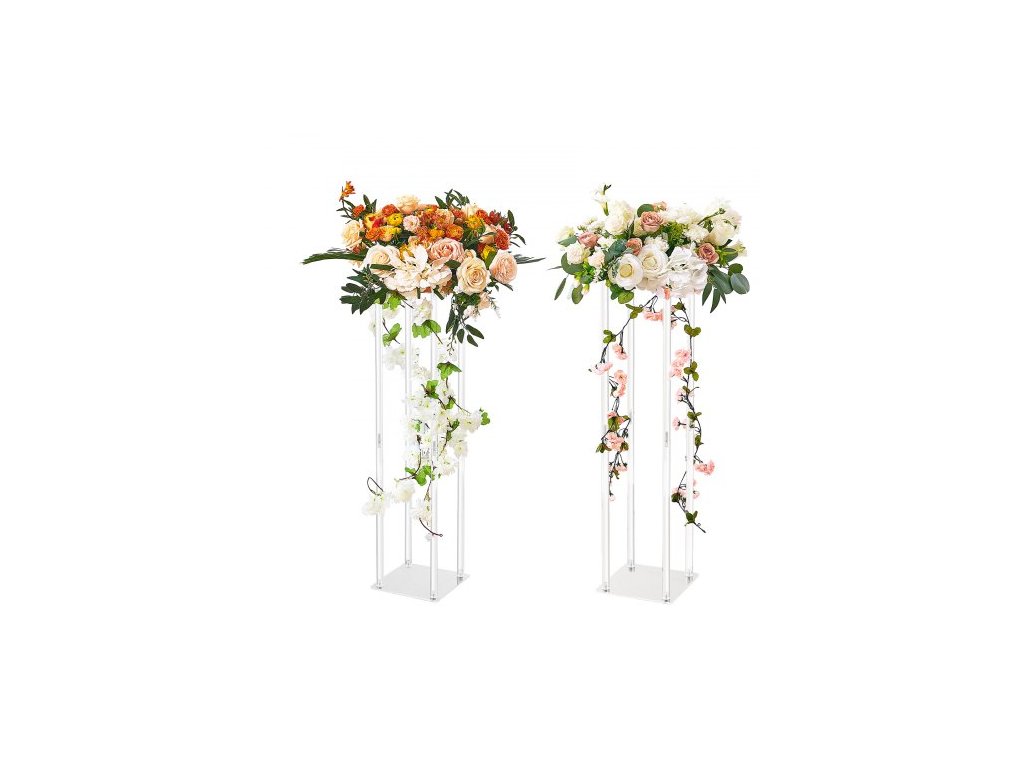 Svatební květinový stojan 2 ks, výška 80 cm, s akrylovým laminátem, akrylový stojan na vázu s geometrickým středovým dekorem, květinový stojan pro akce ve tvaru T, recepce, dekorace na večírky a domácí dekorace