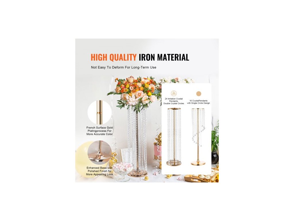 2 KS 35,43 palce / 90 cm vysoký křišťálový stojan na svatební květiny, luxusní dekorace na stůl, květinové vázy, křišťálová zlatá váza, kov, ideální pro svatební večírek, obřad, večeři, událost, hotel, domácí dekorace