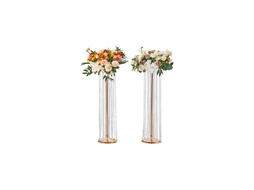 2KS 35,43 palce / 90 cm vysoký křišťálový stojan na svatební květiny, luxusní květinové dekorace, křišťálová zlatá váza, kov, ideální pro svatební hostinu, obřad, večeři, událost, hotel, bytové dekorace