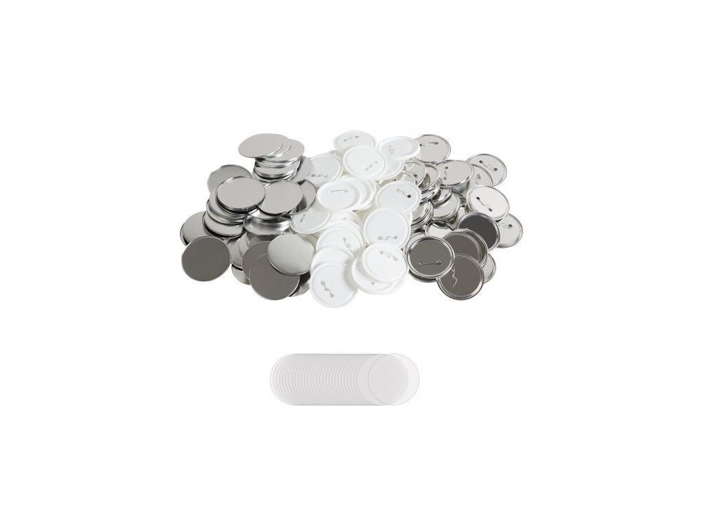 200 sad 3palcových 75mm dílů na zadní knoflíky, díly pro kutily na kulaté knoflíky, sada obsahuje kovový vršek, plastový/kovový knoflík, průhlednou fólii a prázdný papír na dárky, stroj NENÍ součástí dodávky