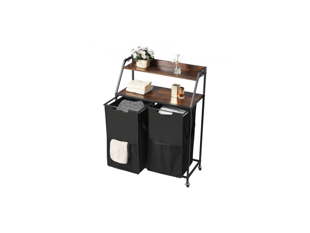 2patrový třídič prádla, vysoký koš na prádlo s kovovým rámem a dřevěnou deskou, 2dílný organizér na kolečkové koše s žebříkovými policemi a pytli z oxfordské látky 600D na špinavé prádlo