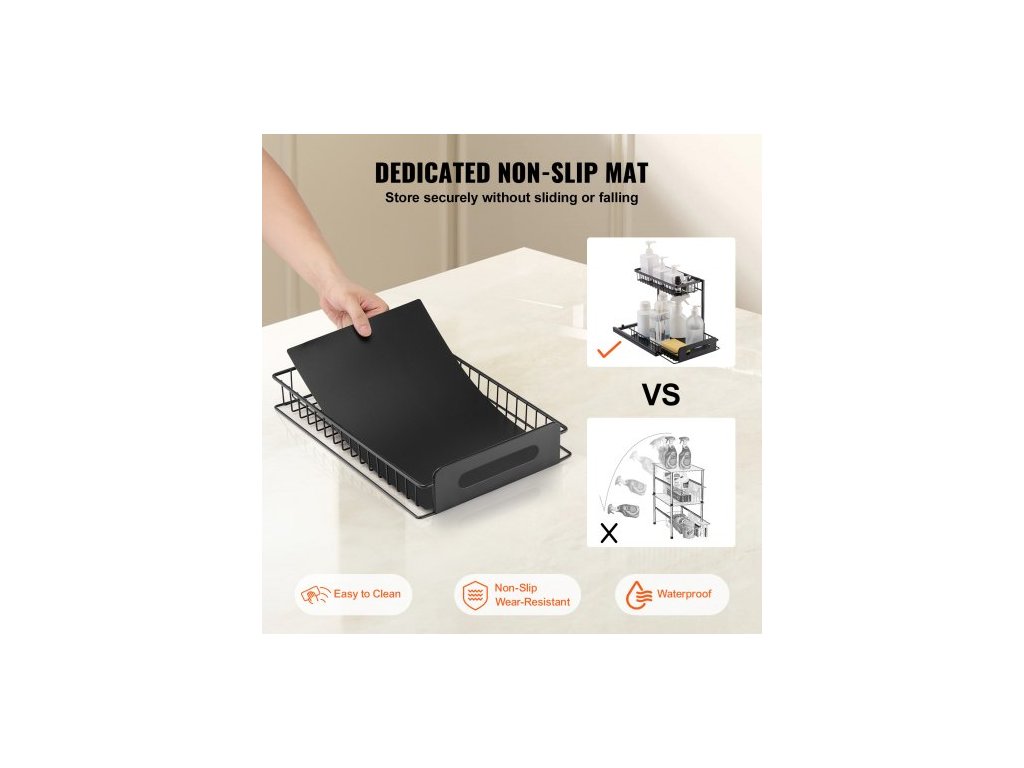 2patrový výsuvný organizér na skříňky (27,4 cm Š x 36,2 cm H), organizér a úložný prostor pod dřez, výsuvný organizér na skříňky se zásuvkami, drátěný koš, police, rozměry pro instalaci skříňky 69,5 cm Š x 39,5 cm H x 33 cm V (balení po 2 ks)