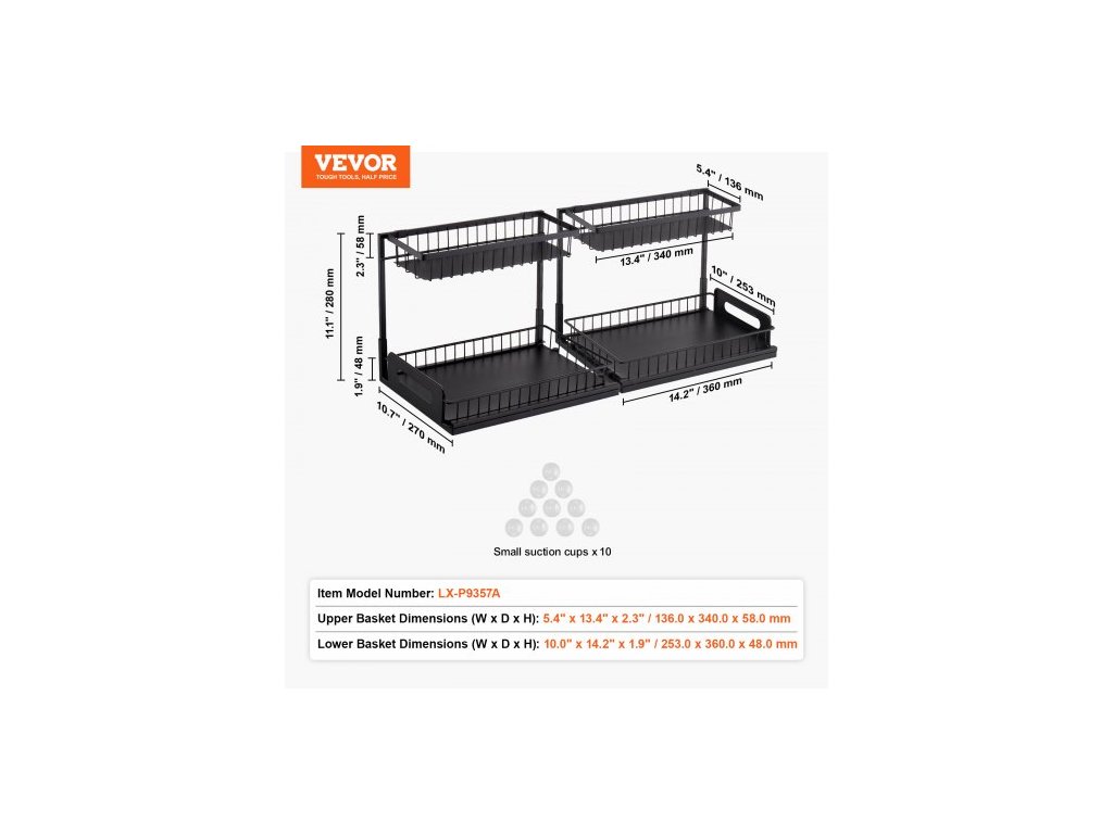 2patrový výsuvný organizér na skříňky (27,4 cm Š x 36,2 cm H), organizér a úložný prostor pod dřez, výsuvný organizér na skříňky se zásuvkami, drátěný koš, rozměry 69,4 cm Š x 39,4 cm H x 33,3 cm V, velikost pro instalaci skříňky (balení 2 kusů)