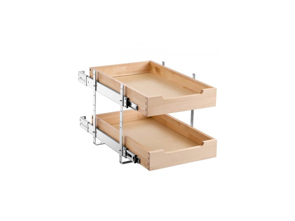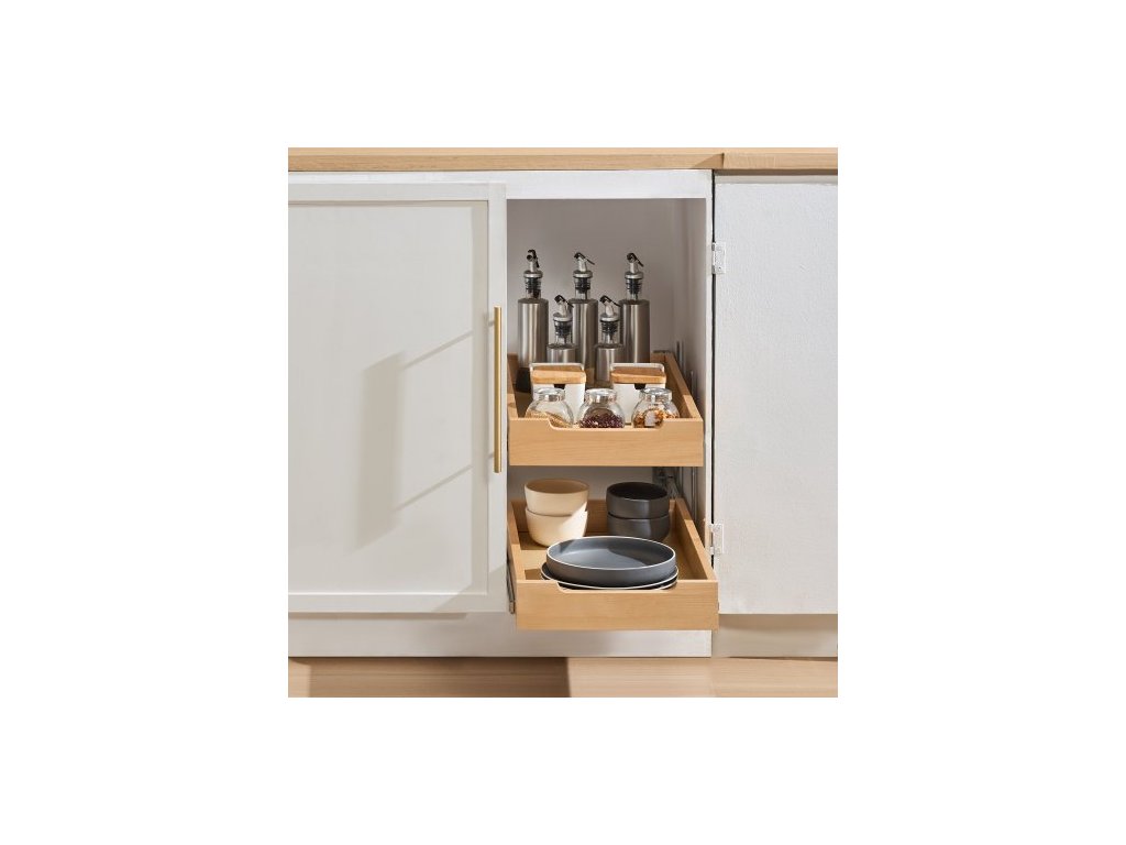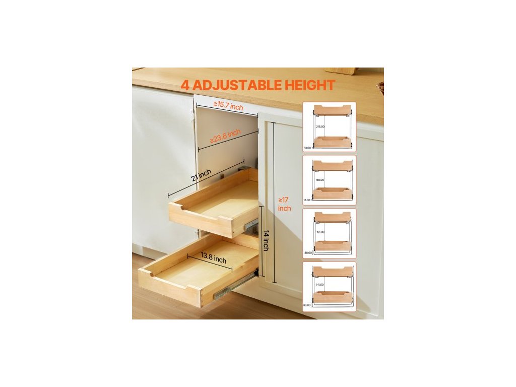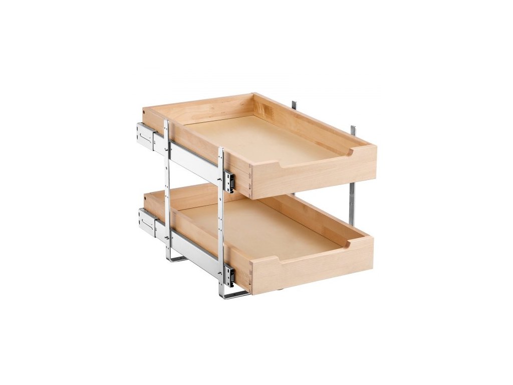 2patrový výsuvný organizér na skříňky, zásuvka skříňky 14"Š x 21"H, měkké zavírání, odolná posuvná dřevěná zásuvka, nastavitelná organizace spodních skříněk pro kuchyň, spíž a koupelnu