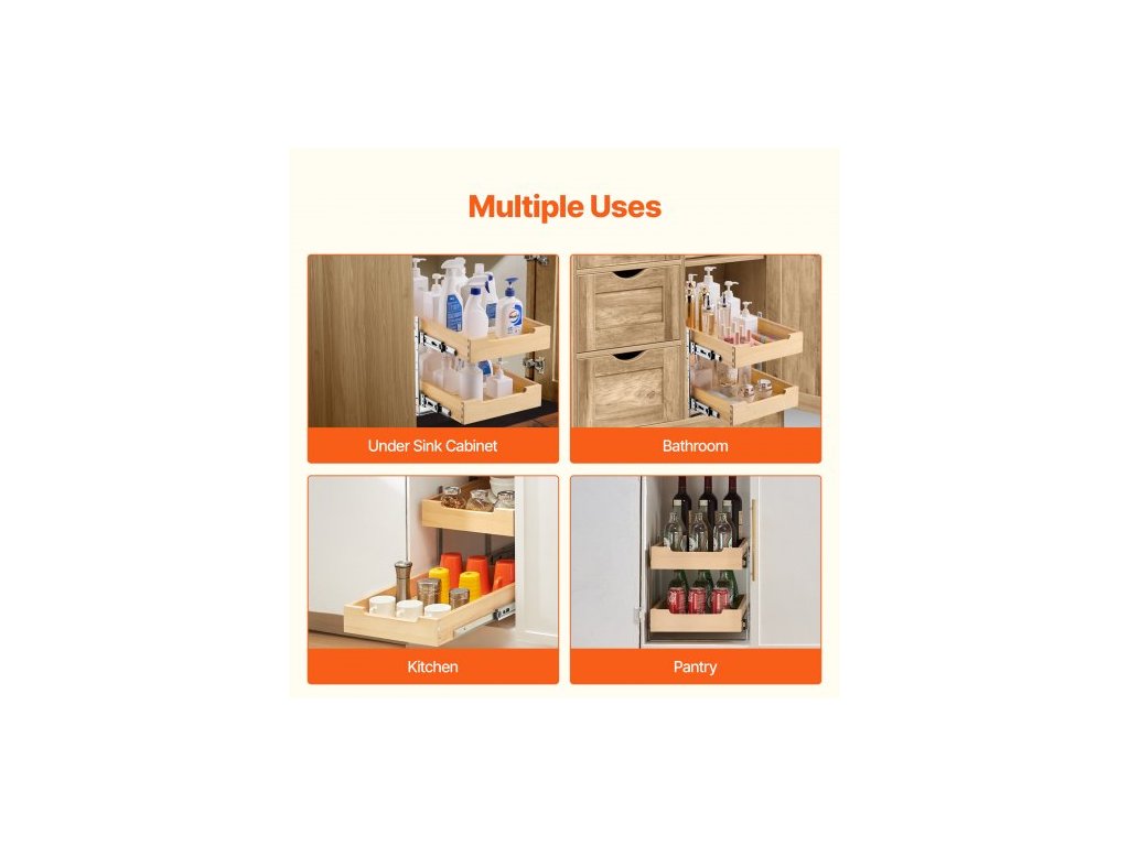 2patrový výsuvný organizér na skříňky, zásuvka skříňky 35,5 cm Š x 53,5 cm H, police s tichým dovíráním, odolná posuvná dřevěná zásuvka, nastavitelná organizace spodních skříněk do kuchyně, spíže a koupelny