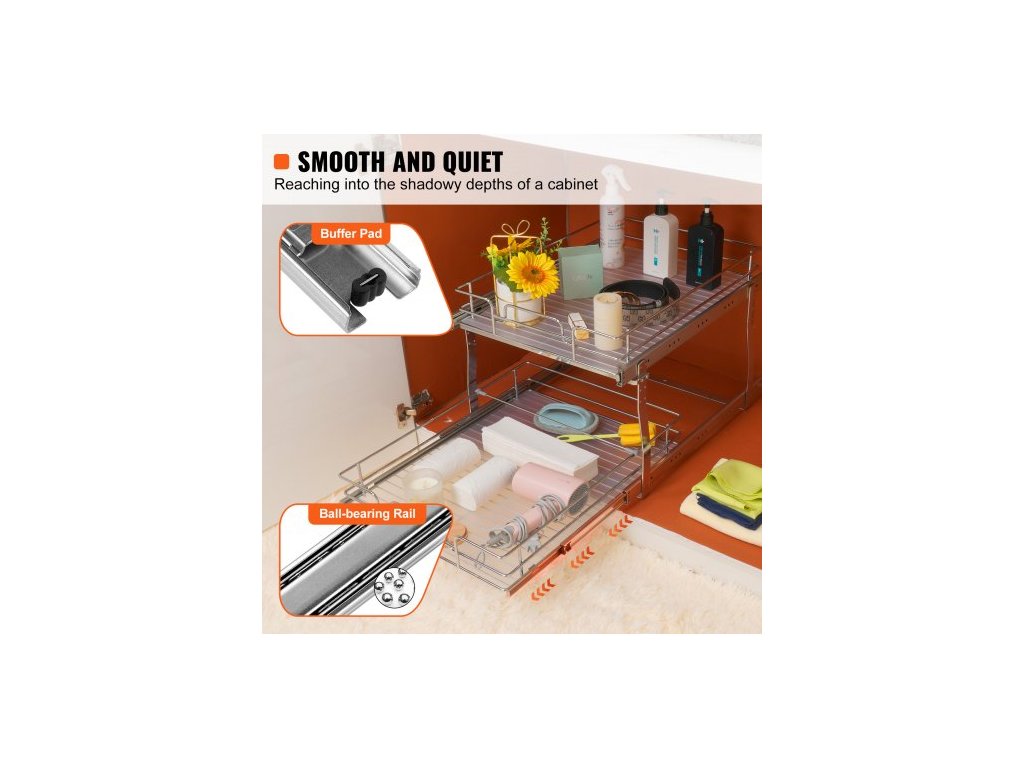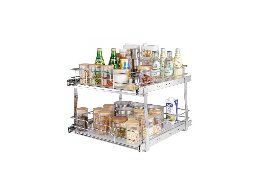 2patrový výsuvný organizér na skříňky 20"Š x 21"H x 15"V, odolné výsuvné police do spíže, ocelové výsuvné zásuvky, úložný prostor s posuvnými zásuvkami pro domácnost, instalační rozměry skříňky 21,5"Š x 22"H x 18"V
