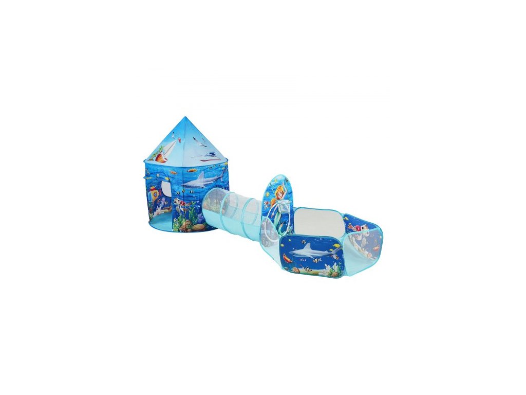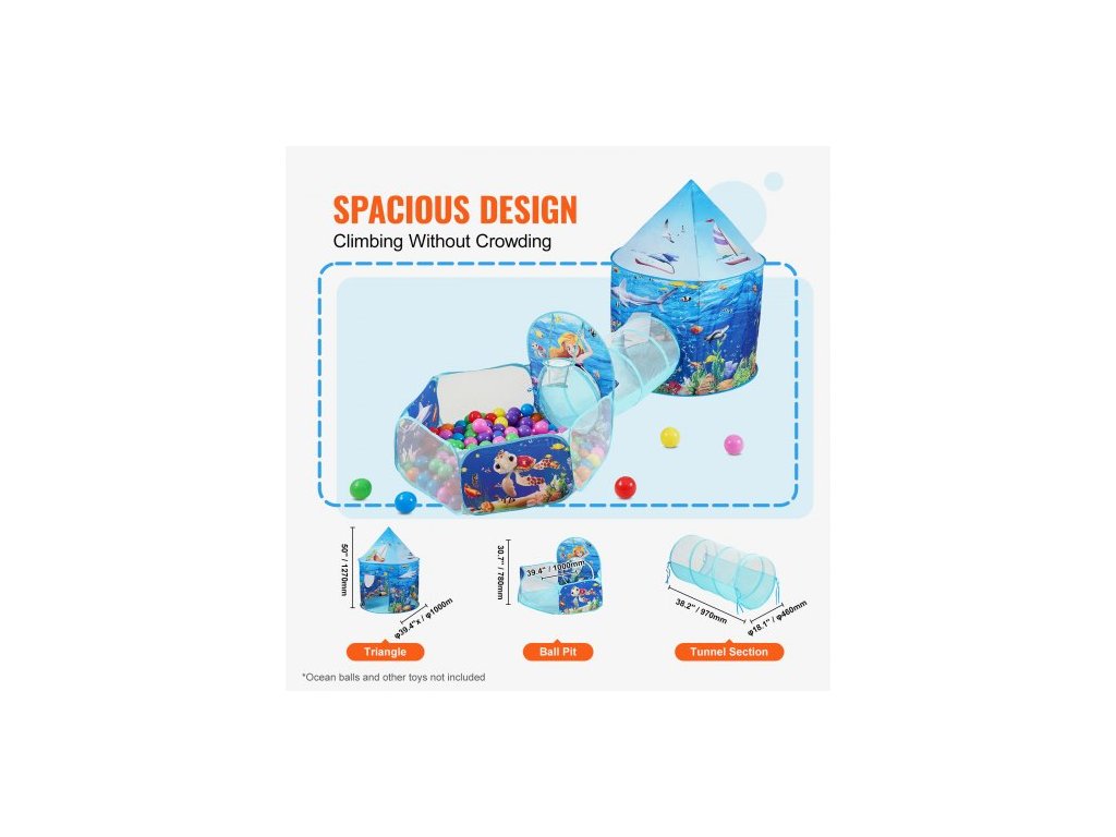3 v 1 dětský hrací stan s tunelem, basketbalovým košem pro chlapce, dívky, miminka a batolata, vnitřní/venkovní vyskakovací domeček s přepravní taškou a popruhy, dárky k narozeninám, modrý oceán