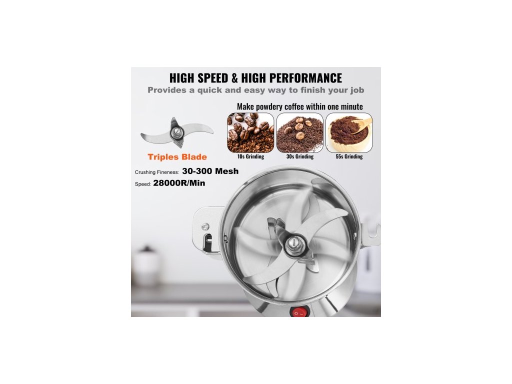 Elektrický mlýnek na obilí 300g, vysokorychlostní komerční mlýnky na koření s výkonem 1500 W, drtič z nerezové oceli, na suché obiloviny, koření, obiloviny, kávu, kukuřici, pepř, rovný typ
