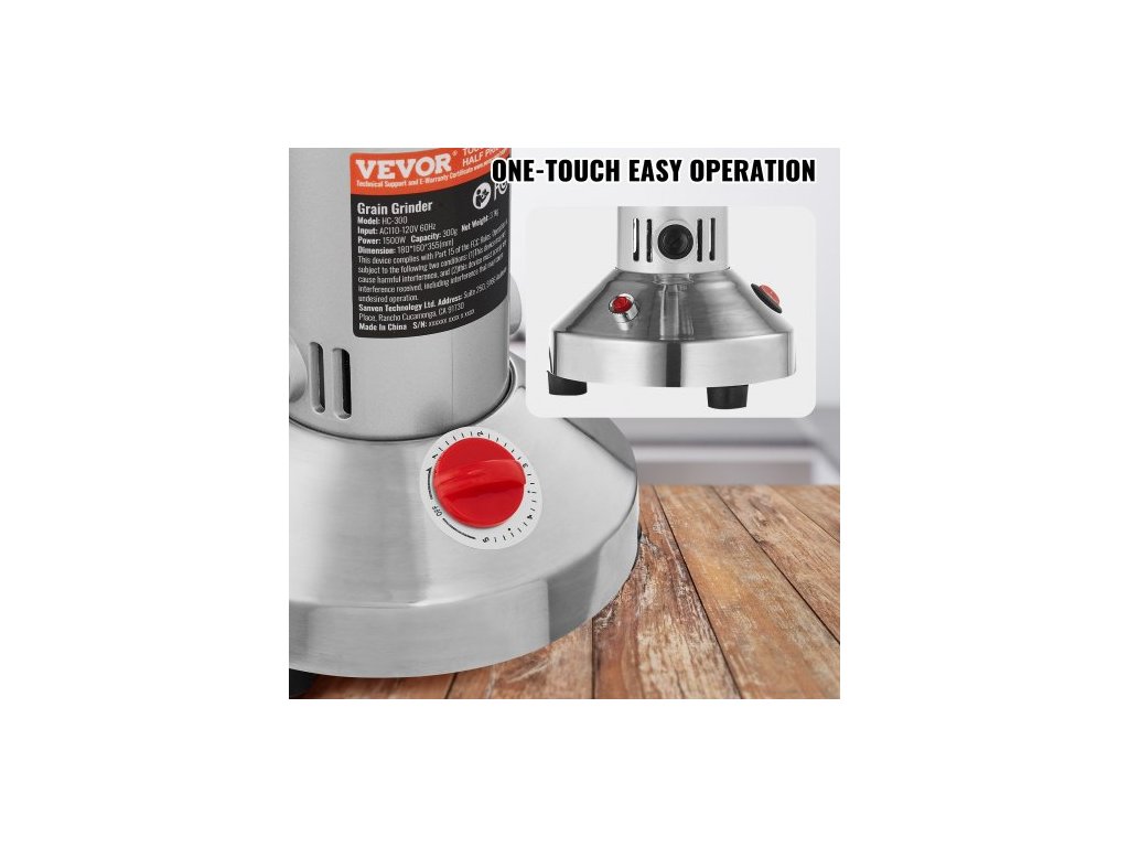 Otáčky motoru: 28000 ot/min,Rozměry výrobku (D x Š x V): 7 x 6,3 x 14 palců / 180 x 160 x 355 mm,Materiál zásobníku: nerezová ocel 403,Rozměry mlecí nádrže: 5,3 x 4,3 palce / 13,5 x 11 cm,Číslo modelu: HC-300,Hmotnost výrobku: 6,8 lbs / 3,1 kg,Mletí: 0,66 lbs / 300 g,Nepřetržitý provoz Doba: 5 minut, Jemnost mletí: 30-300 mesh, Výkon: 1500 W