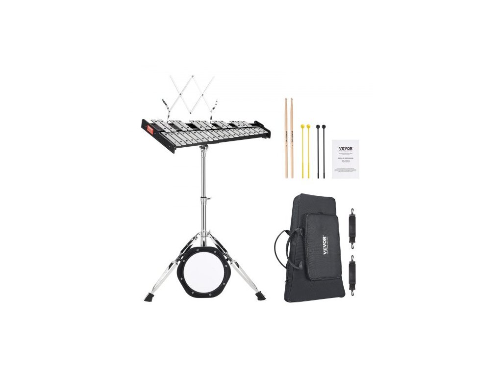 30tónová zvonkohra s xylofonem, profesionální sada bicích nástrojů s paličkami, bicími paličkami, notovým stojanem, cvičební podložkou 203 mm / 8", nastavitelným stojanem a přepravní taškou pro studenty i dospělé.