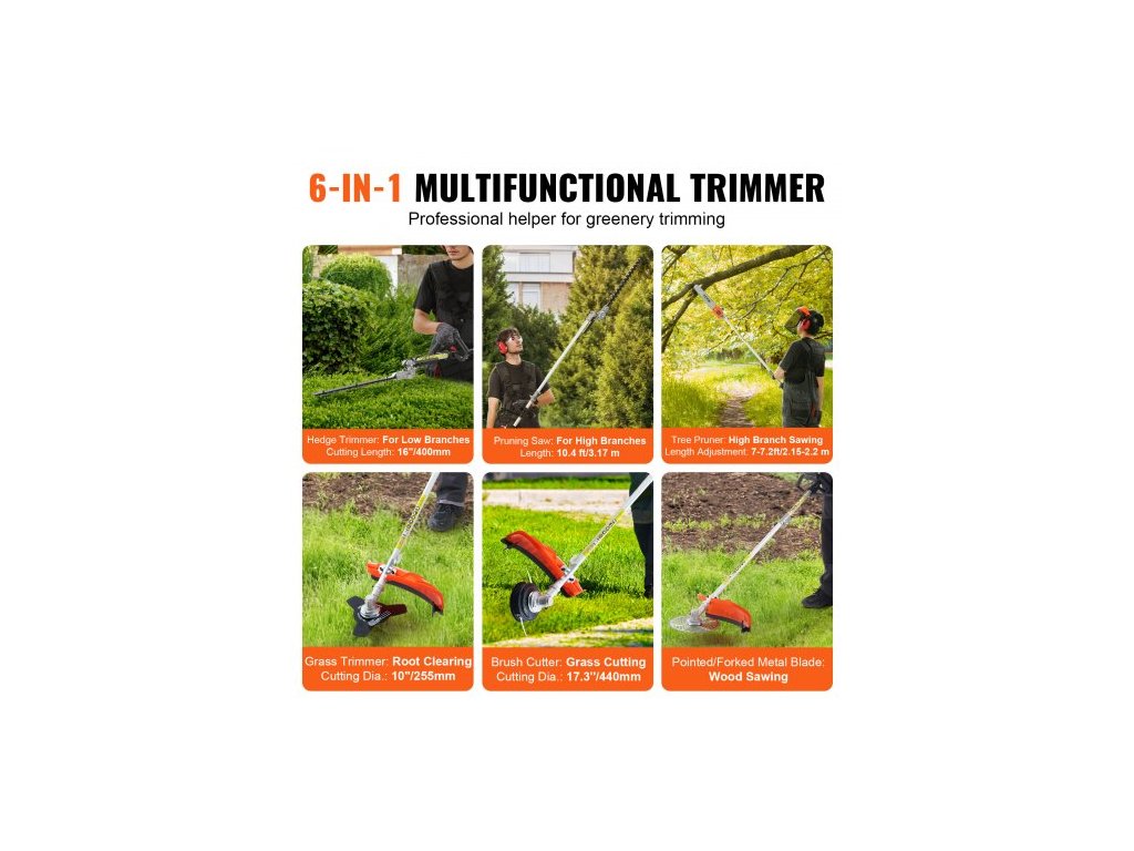 33CC 6 v 1 multifunkční vyžínací nástroje, benzínový nůž na živý plot, vyžínač plevele, strunový vyžínač, křovinořez, ořezávač okrajů, vyžínač s tyčí, řetězová pila s prodlužovací tyčí