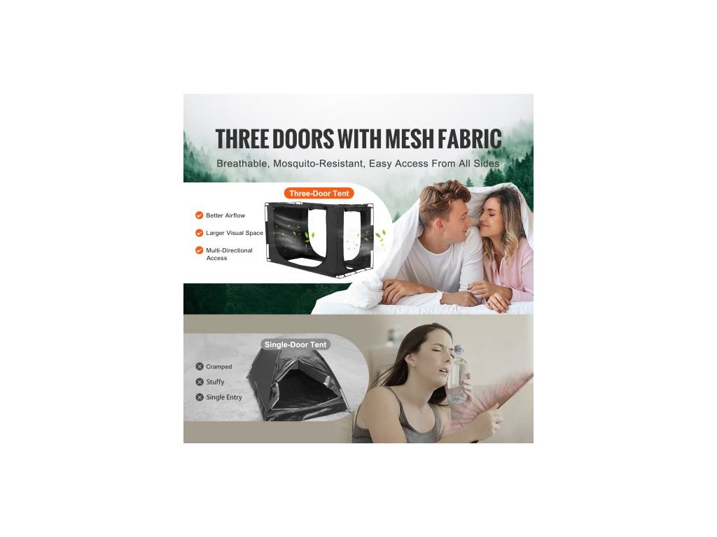 3dveřový stan s lůžkem, prodyšný, 70% zatemňovací, s vláknitými tyčemi o tloušťce 0,37 palce, 1900x1370x1190 mm