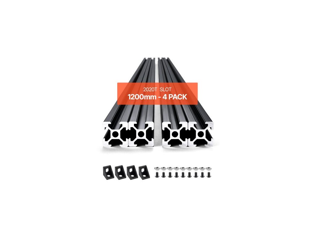 4PCS 47,2" (1200mm) T-drážkový profil 2020 z hliníku, eloxovaná lineární kolejnice dle evropského standardu, vysokopevnostní extrudovaná hliníková kolejnice pro 3D tiskárnu, CNC stroj pro kutily, laserové gravírování, černá