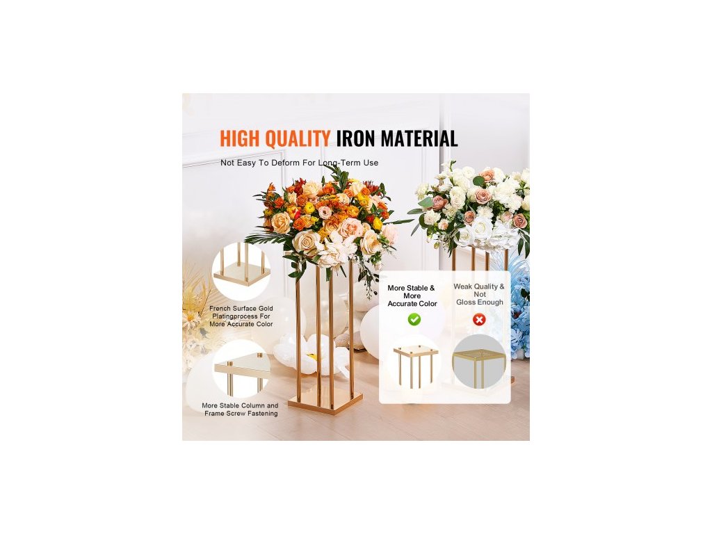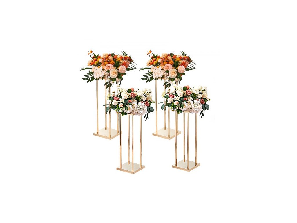Svatební květinový stojan 4 ks, zlatý kovový sloupový stojan na květiny, výška 80 cm s kovovým laminátem, geometrické vázové stojany na středové dekorace, válcový květinový stojan pro akce, recepci, párty a večírky