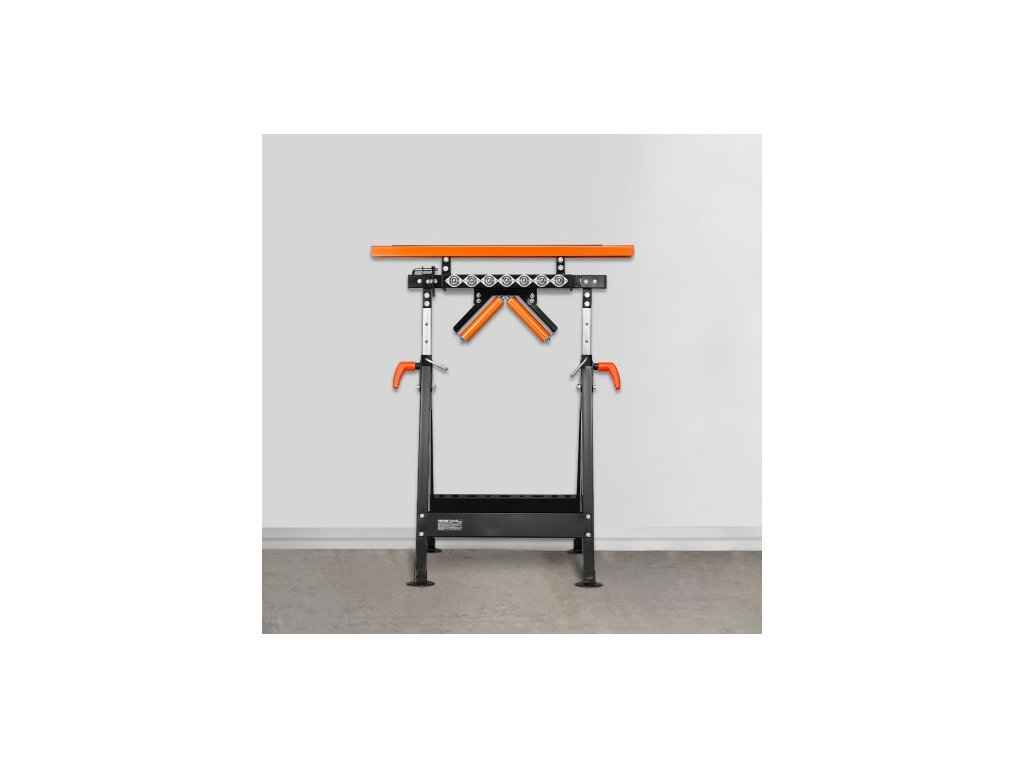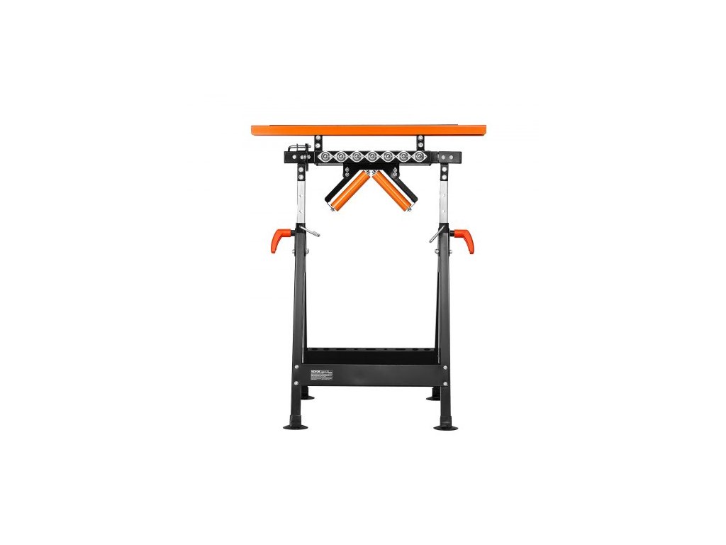 Válečkový stojan 4 v 1, nosnost 200 kg (440 lb), nastavitelná výška 84–127 cm (33–50 palců), skládací, odolný, s regálem a leštěnou vícesměrnou válečkovou hlavou, pro prodloužení podpěry pro stolní pilu a obrábění dřeva