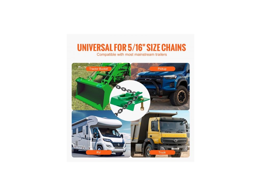 5/16" hák na traktorovou lopatu s upevňovacím kroužkem, kovaná ocel třídy 70, balení 2 ks šroubovacích háků s opěrnou deskou, kompatibilní s traktorovou lopatou, obytným vozem, UTV, maximální pevnost v tahu 12 000 lbs, zelený