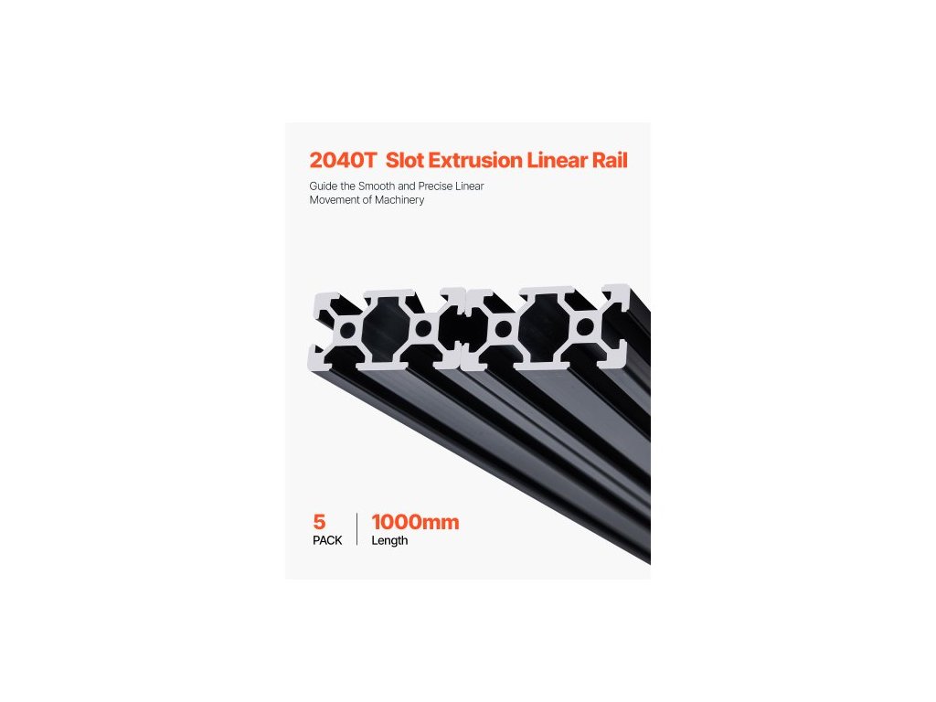5PCS 39,4" (1000 mm) T-drážkový profil 2040 z hliníku, eloxovaná lineární kolejnice dle evropského standardu, vysokopevnostní extrudovaná hliníková kolejnice pro 3D tiskárnu, CNC stroj pro kutily, laserové gravírování, černá