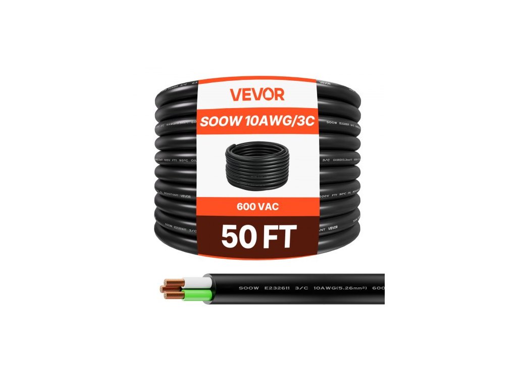 Izolační materiál: CPE pryž,Číslo modelu položky: SOOW 10AWG/3C,Materiál vodiče: Jemný měděný drát bez kyslíku,Délka kabelu: 50 ft/15,24 m,Provozní prostředí: -40°C až 90°C/-104°F až 194°F,Rozměry výrobku: 295 x 300 x 140 mm/11,6 x 11,8 x 5,51 palce,Čistá hmotnost: 6,83 kg/15,1 lbs,Jmenovité napětí: 600 V AC