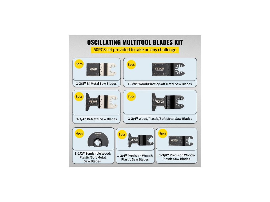 50 ks oscilačních pilových listů, sada rychloupínacích multifunkčních listů, HCS nástroje pro dřevo, plast, kov, hřebíky, šrouby, kompatibilní s Dewalt, Dremel, Fein, Worx, Bosch, Makita, Milwaukee