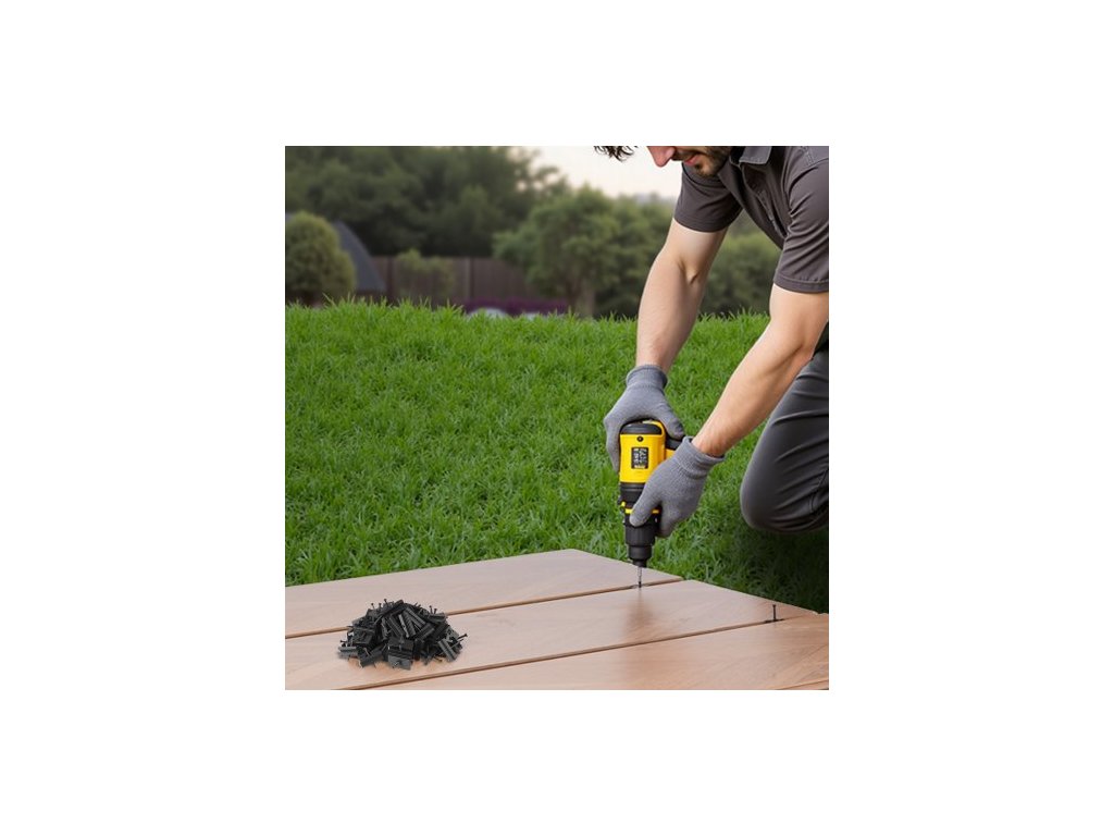 500 ks skrytých úchytů pro kompozitní terasové desky, univerzální kompozitní klipy a skryté plastové úchyty s kovovými šrouby, polypropylenové PP klipy, vhodné pro mezery 5,5 mm, černá