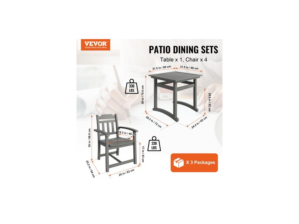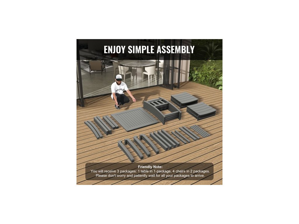5dílná jídelní sada na terasu , venkovní čtvercový nábytek, stůl a židle, zahradní nábytek do každého počasí, malá sada na terasu HIPS, na trávník, terasu, dvůr, k bazénu, světle šedá