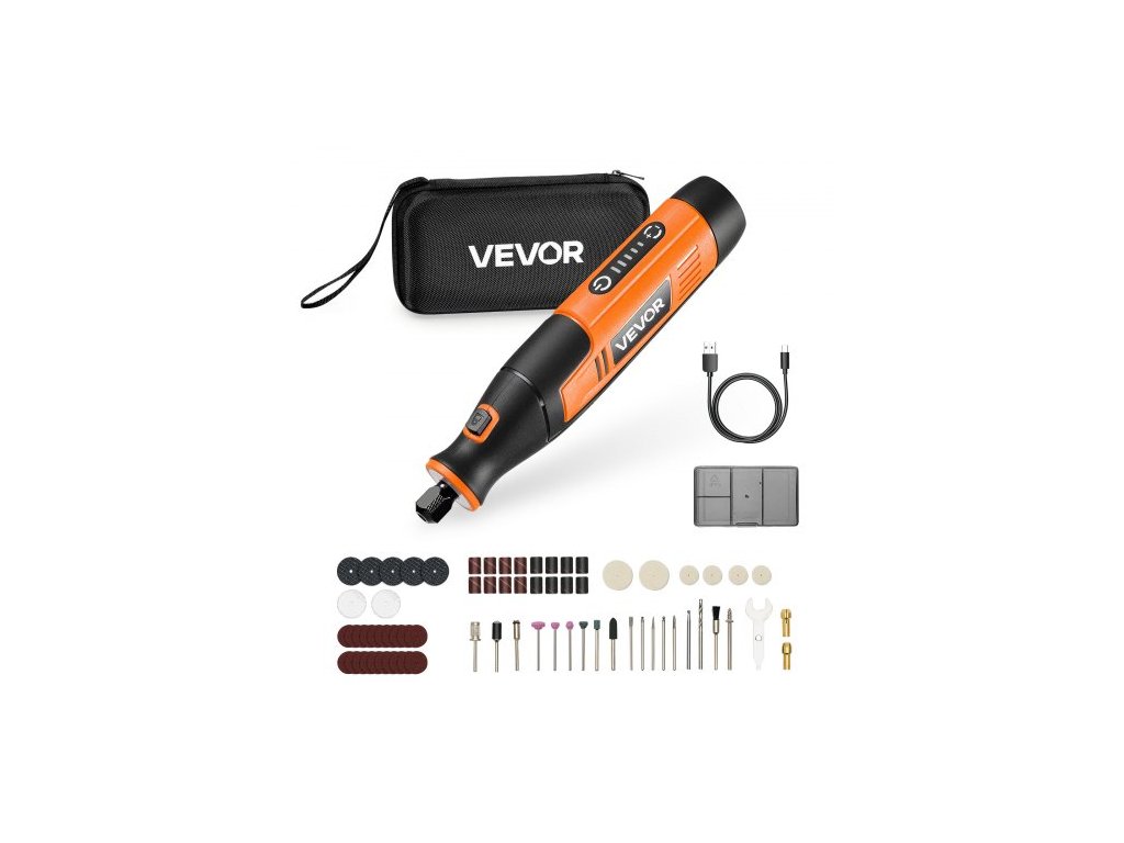 Kapacita baterie: 2000 mAh,Široký rozsah rychlostí: 7000 - 20000 ot./min.,Velikost kleštiny: 2,3 mm / 3,2 mm,Provozní napětí: DC 4V,Číslo modelu položky: S0J-FE17-10,Celkový počet příslušenství: 73 kusů,Typ položky: Sada akumulátorového rotačního nářadí,Úrovně rychlosti: 5stupňové nastavitelné,Rozměry produktu: 6,38 x 1,38 x 1,57 palce / 162 x 35 x 40 mm, Čistá hmotnost: 0,88 lbs / 0,4 kg