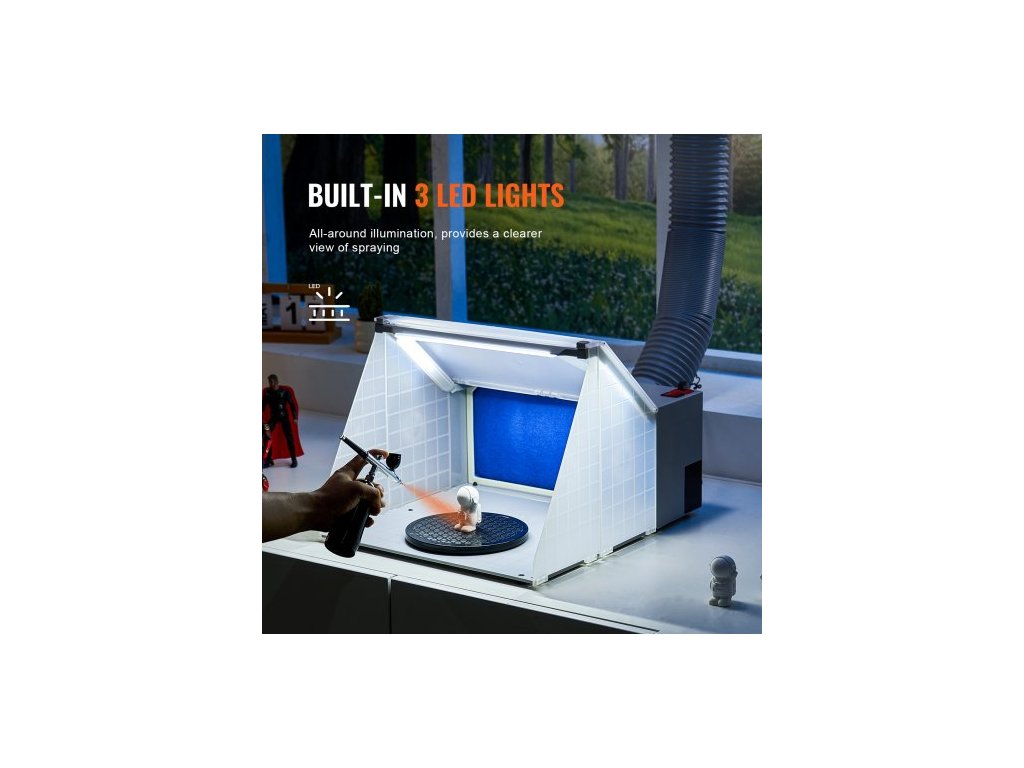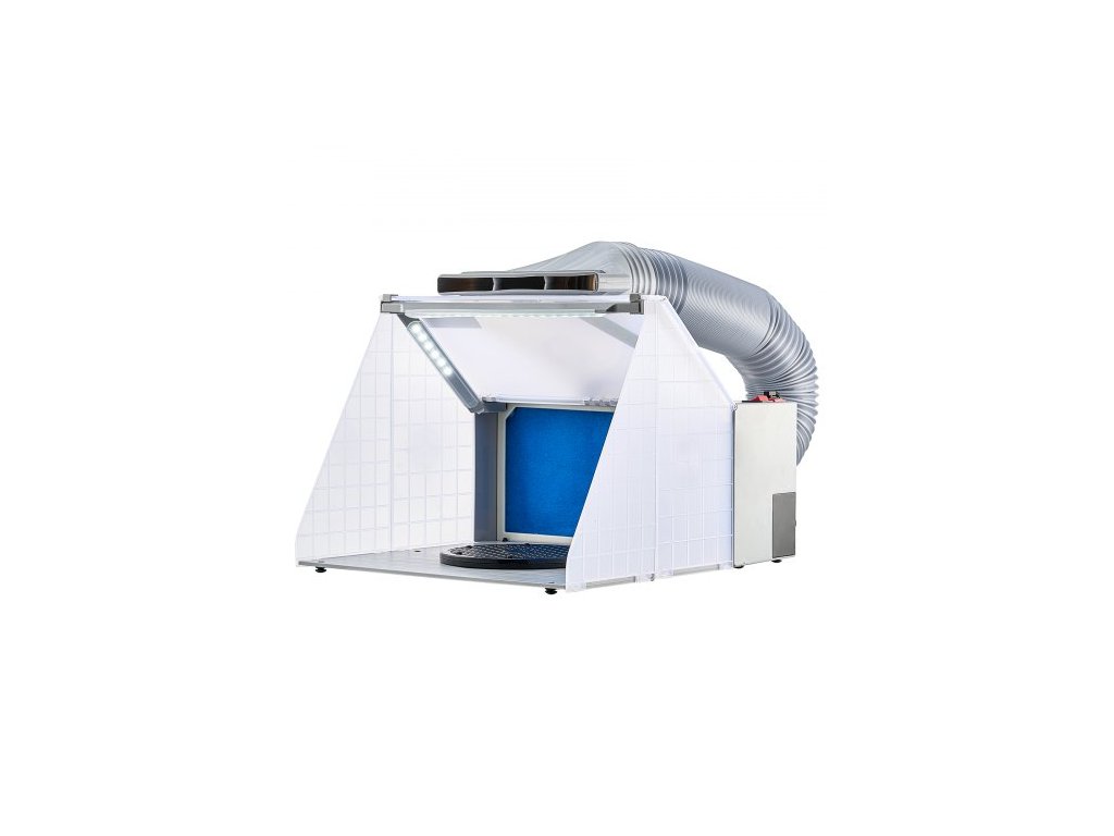 Airbrush stříkací kabina, přenosná sada pro hobby airbrush stříkací kabinou s LED světly, odsávacím ventilátorem a prodlužovací hadicí, airbrush stříkací kabina pro lakování modelů, umění, řemesel, dortů
