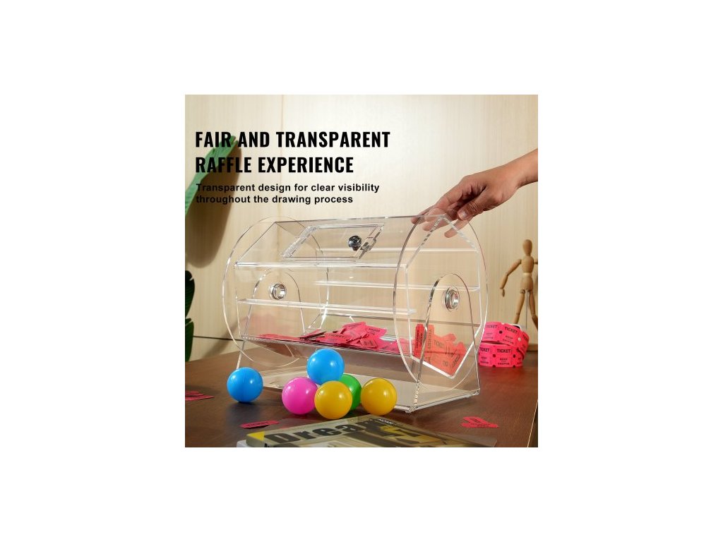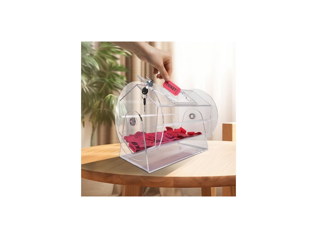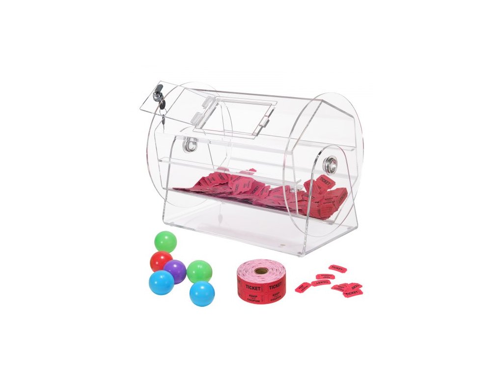 Akrylový buben na tombolu , pojme 5000 losů nebo 200 tombolových koulí, profesionální klec na tombolové losy se 2 klíči, průhledná loterijní krabička na losy, krabička na tombolové losy pro bingo