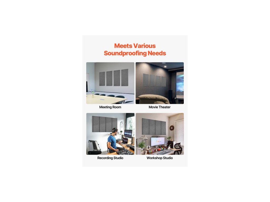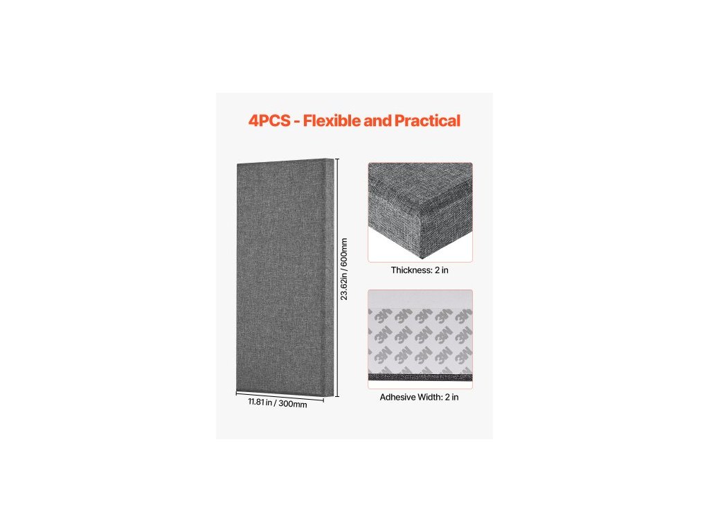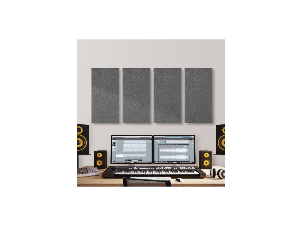 Akustické panely 4 ks, 2 palce silné, 23,6 x 11,8 palce, zvukově izolační panely ze skelných vláken, samolepicí zvukotěsné nástěnné desky, pro studia, kanceláře, domácí kina, zasedací místnosti, šedé