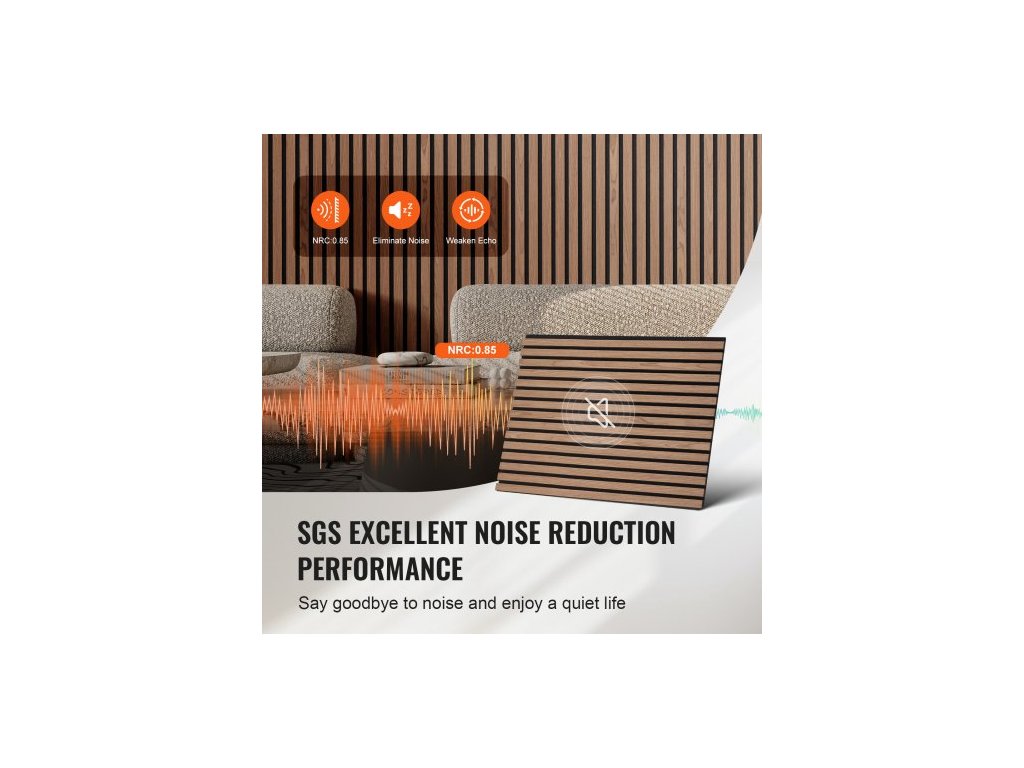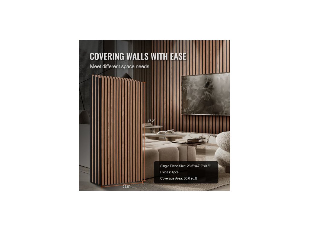 Akustické panely z dřevěných lamel, 23,6 x 47,2 palce, akcentové dřevěné stěnové panely z MDF pro moderní interiérové stěny, stěnové panely z imitace dřeva pro stylovou dekoraci a redukci hluku, ořech