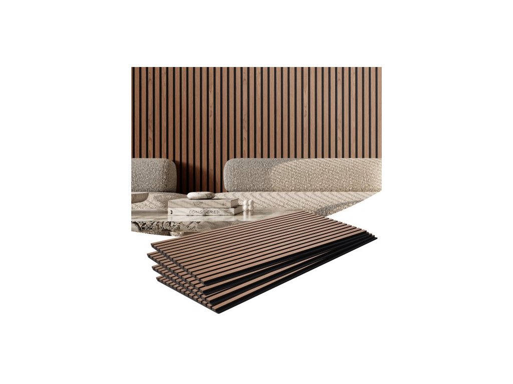 Akustické panely z dřevěných lamel, 23,6 x 47,2 palce, MDF akcentové dřevěné stěnové panely pro moderní interiérové stěny, nástěnné panely z imitace dřeva pro stylovou dekoraci a redukci hluku, ořech