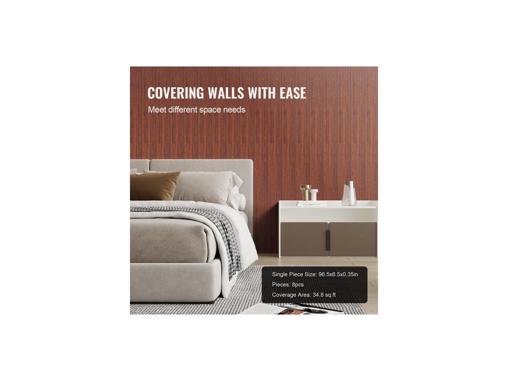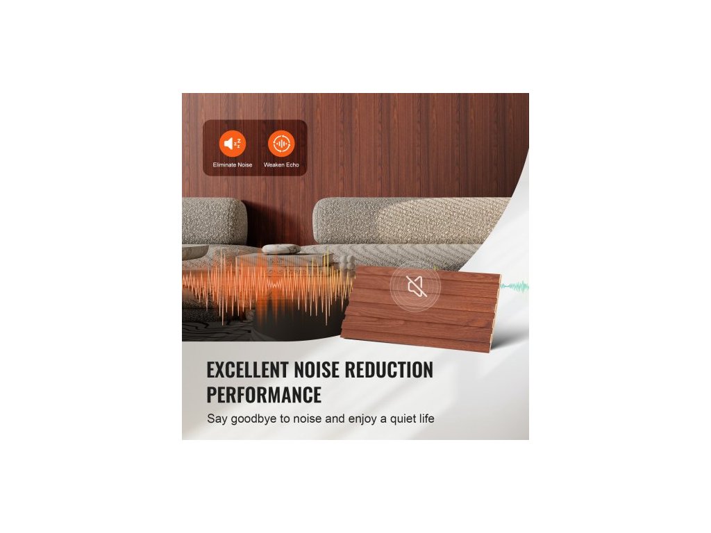 Akustické panely z dřevěných lamel, 8 ks 96 x 6 palců, akcentové dřevěné stěnové panely WPC pro moderní interiérové stěny, nástěnné panely z imitace dřeva pro stylovou dekoraci a redukci hluku, černý ořech