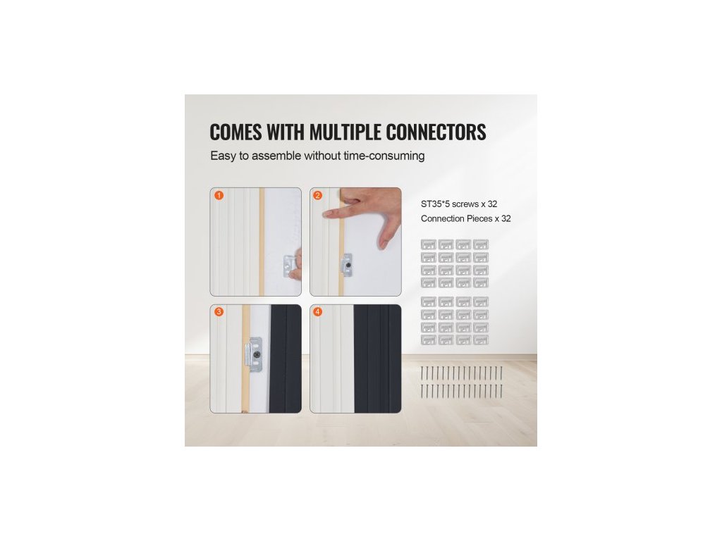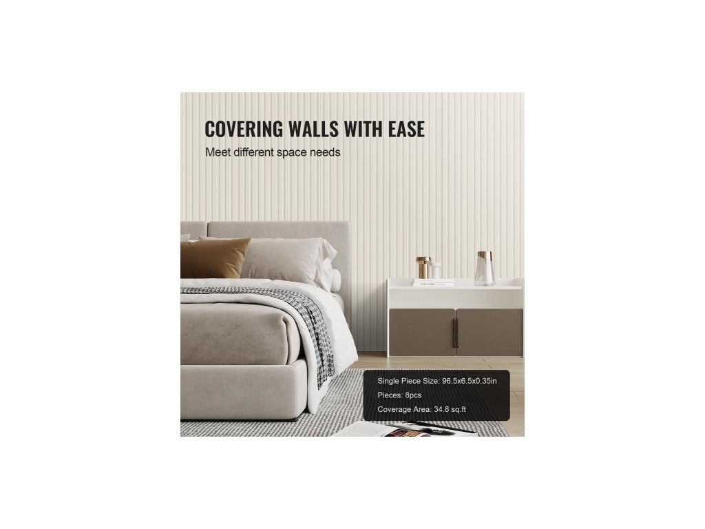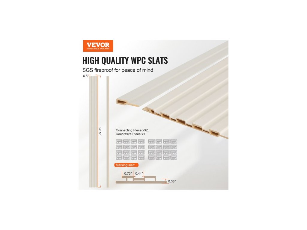 Akustické panely z dřevěných lamel, 8 ks 96 x 6 palců, akcentové dřevěné stěnové panely WPC pro moderní interiérové stěny, nástěnné panely z imitace dřeva pro stylovou dekoraci a redukci hluku, matná bílá
