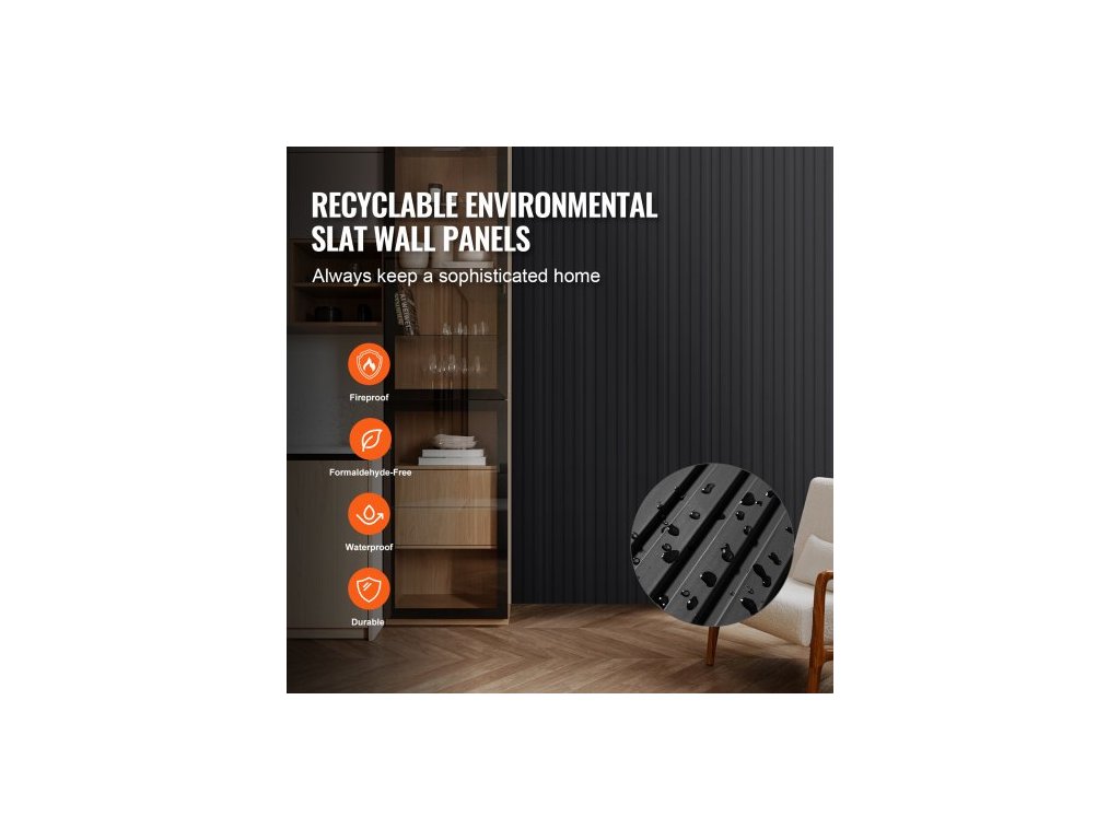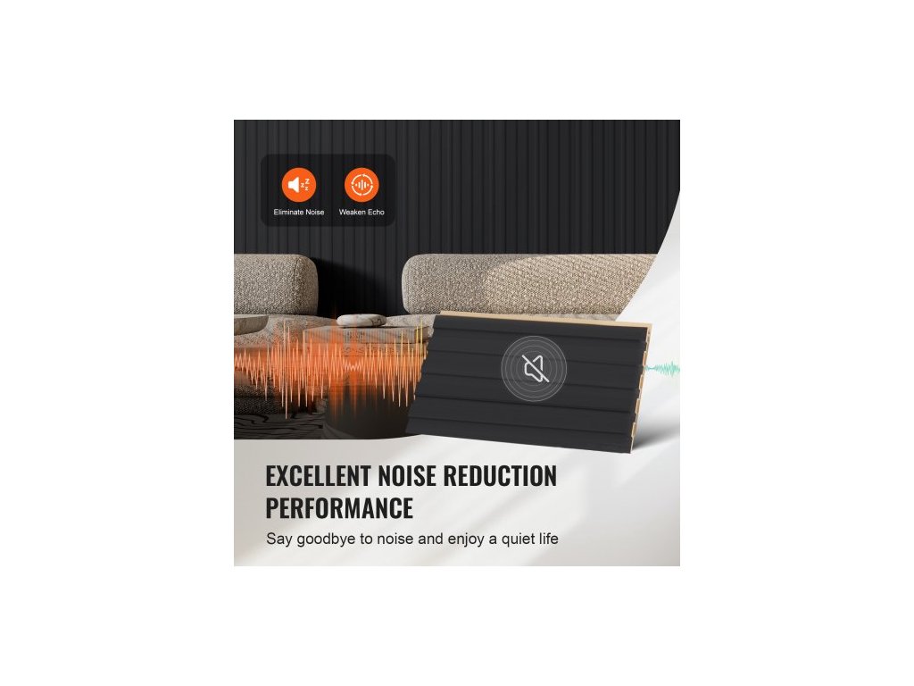 Akustické panely z dřevěných lamel, 8 ks 96 x 6 palců, akcentové dřevěné stěnové panely WPC pro moderní interiérové stěny, nástěnné panely z imitace dřeva pro stylovou dekoraci a redukci hluku, matně černé