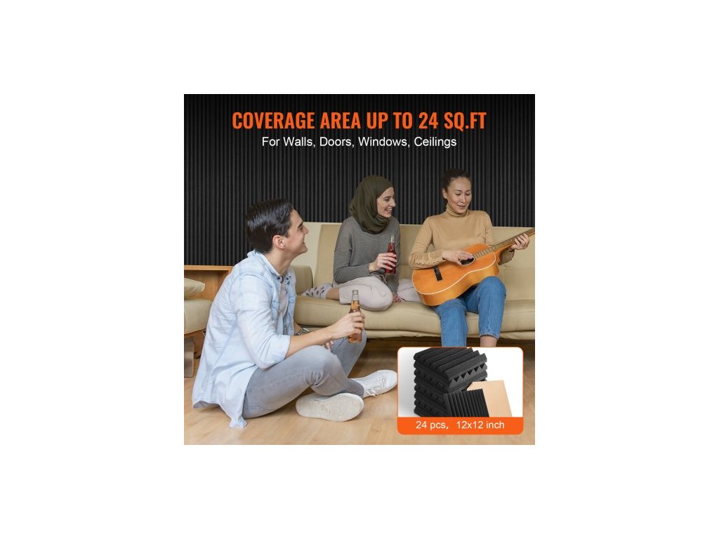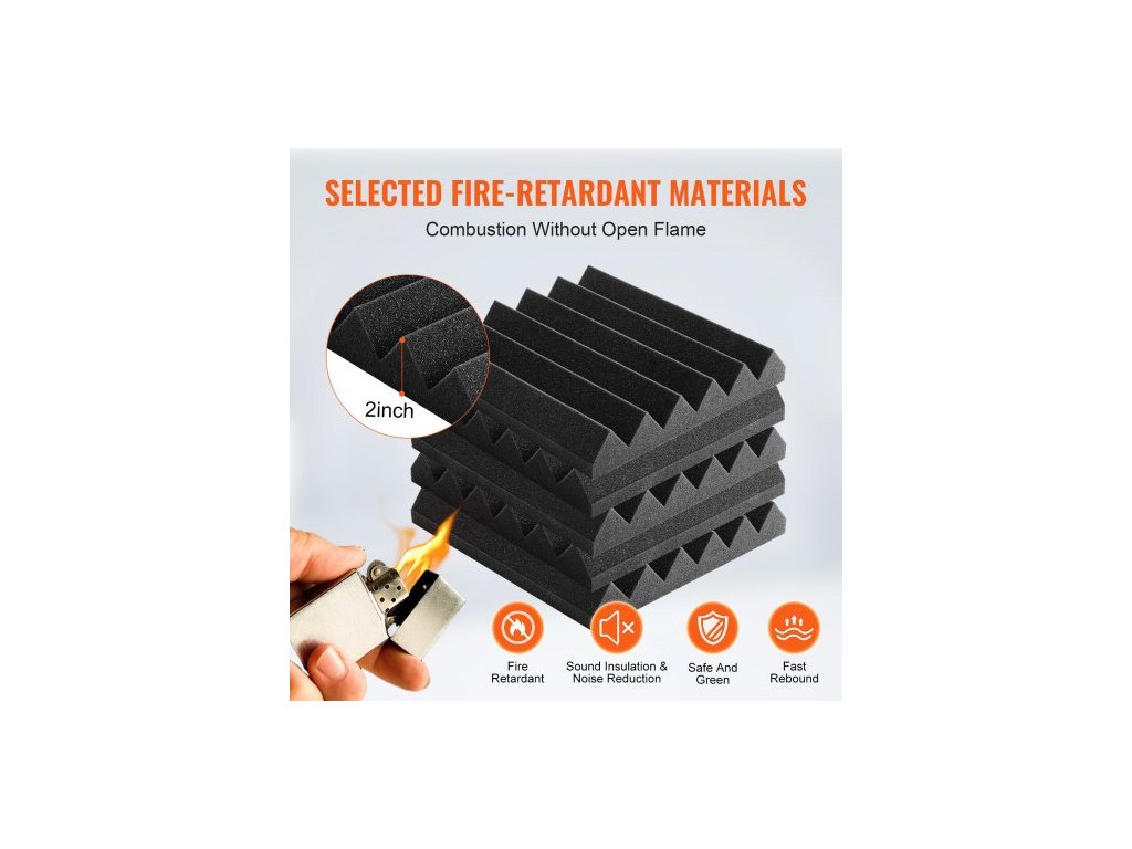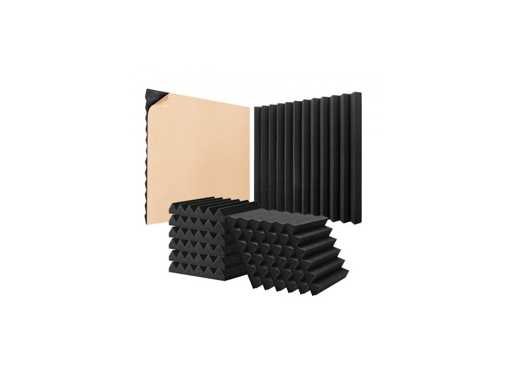 Akustické pěnové panely , balení 24 kusů 12 x 12 x 2 palce, samolepicí zvukotěsné stěnové panely s vysokou hustotou, ohnivzdorné akustické panely, zvukově izolační panely pro stěny a stropy ve studiu, černé