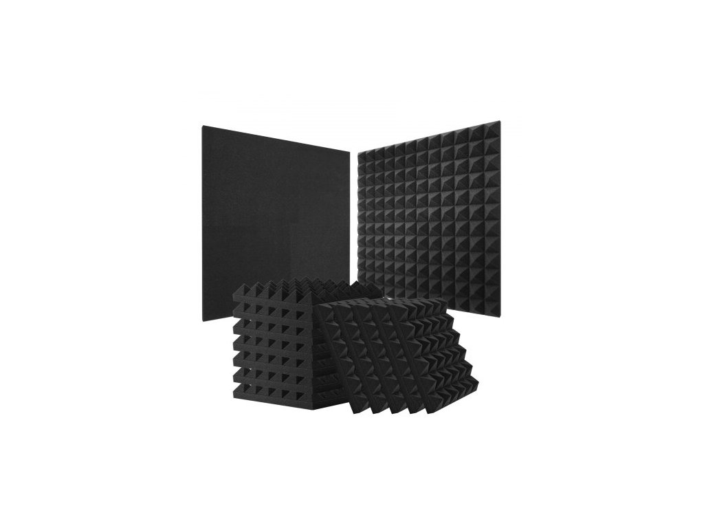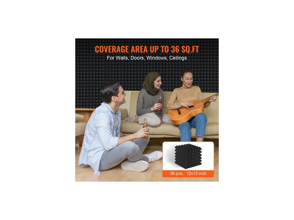 Akustické pěnové panely , balení 36 kusů 12 x 12 x 2 palce, pyramidové zvukotěsné stěnové panely, ohnivzdorné akustické panely, zvukově izolační panely pro stěny a stropy studia, černé