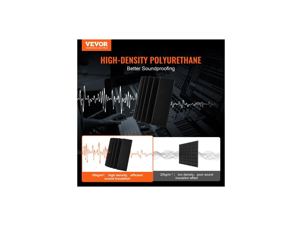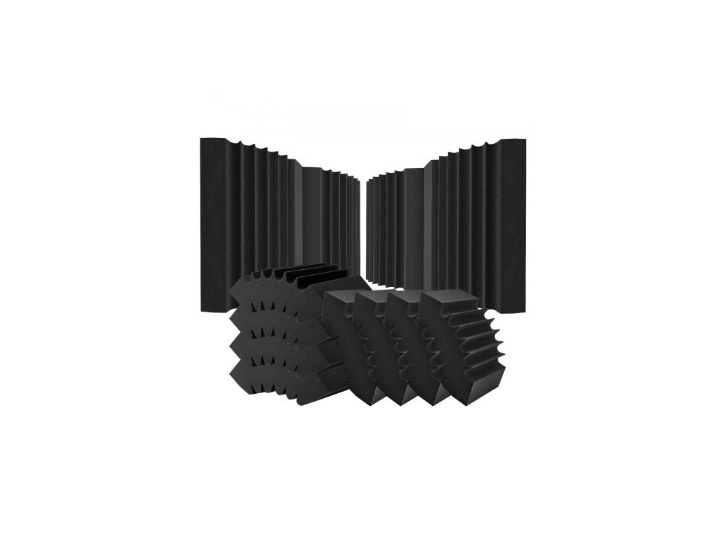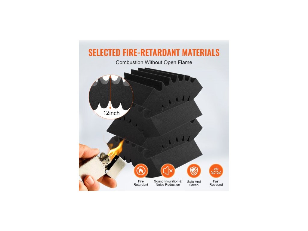 Akustické pěnové panely , balení po 4 kusech, 16,5 x 6,3 x 12 palců, samolepicí zvukotěsné stěnové panely s vysokou hustotou, ohnivzdorný akustický panel, zvukově izolační panel pro stěny a stropy studia, černý