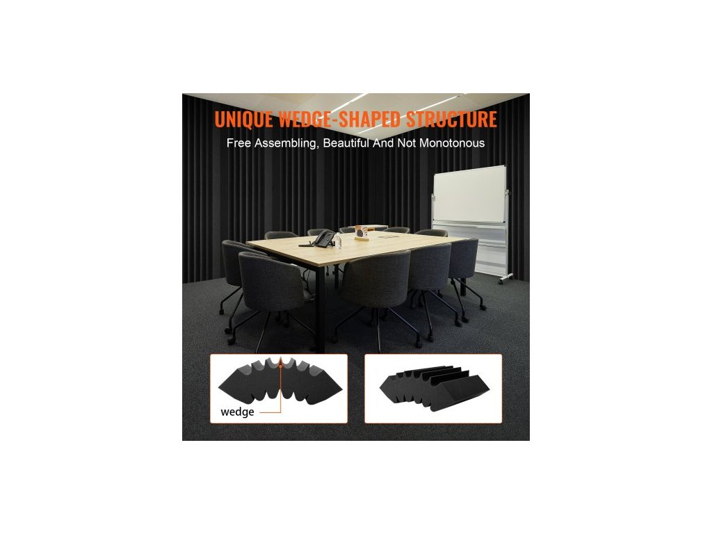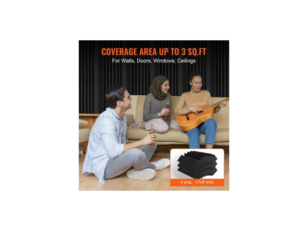 Akustické pěnové panely , balení 4 kusů 16,5 x 6,3 x 12 palců, samolepicí zvukotěsné stěnové panely s vysokou hustotou, ohnivzdorný akustický panel, zvukově izolační panel pro studiové stěny a stropy, černý